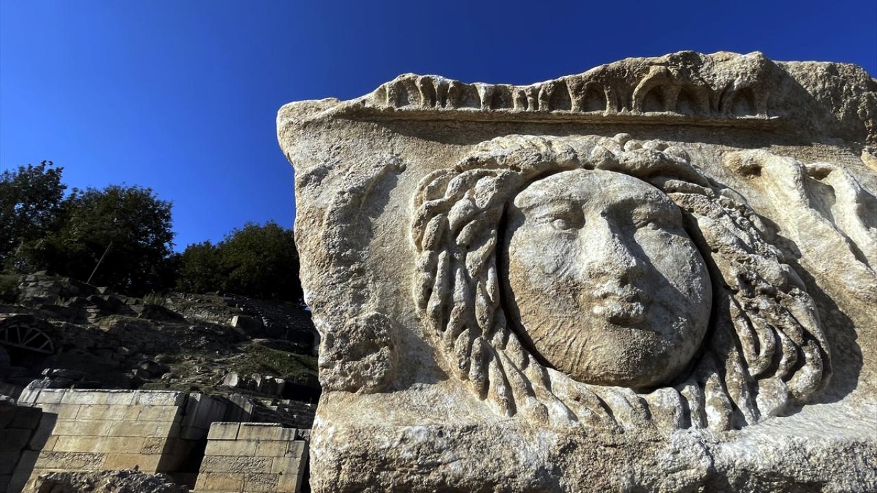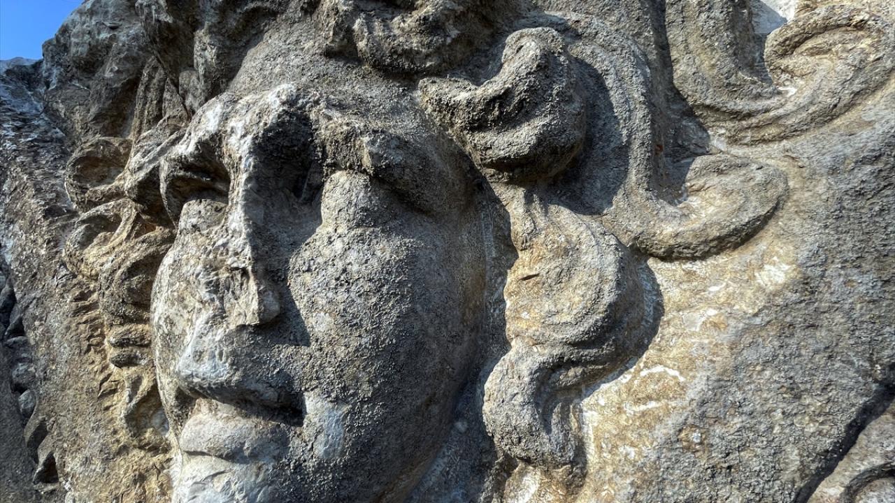 Antik kentin tiyatro bölümündeki kazılarda 2 bin yıllık medusa, mask heykelleri ile groteks figürü ve tonoz bulundu.