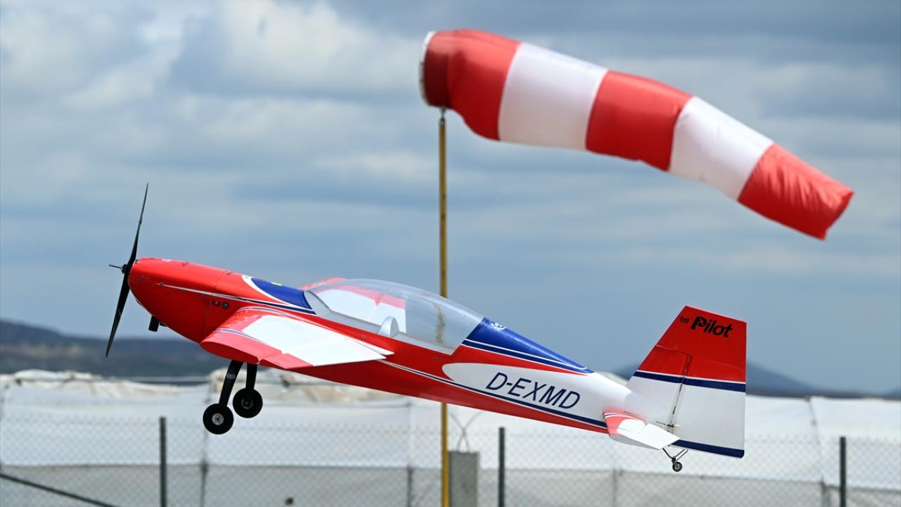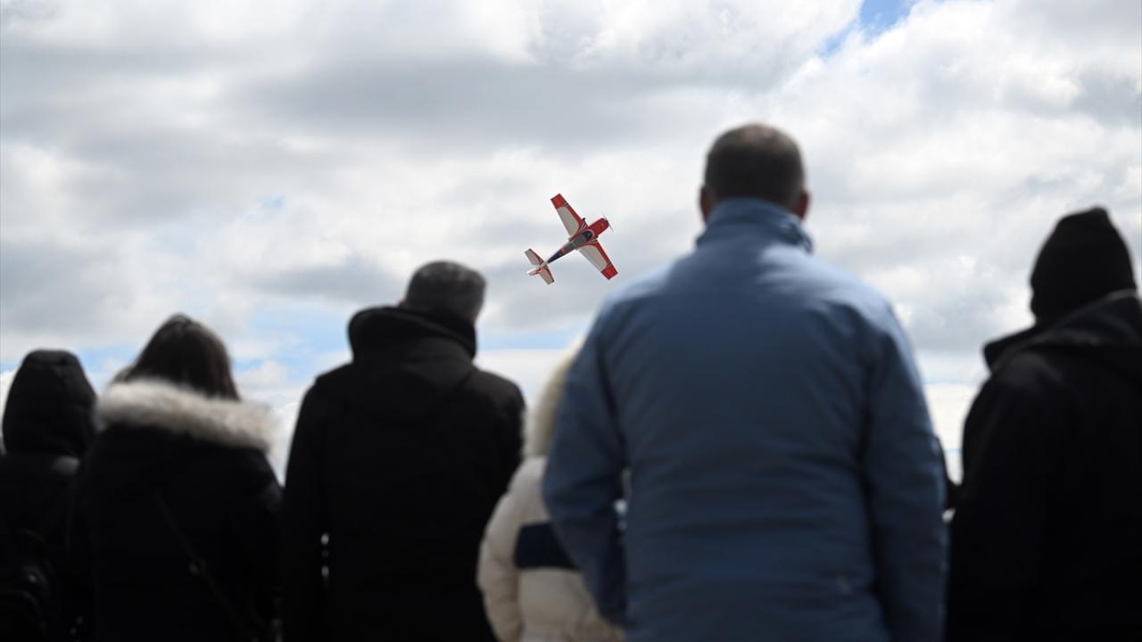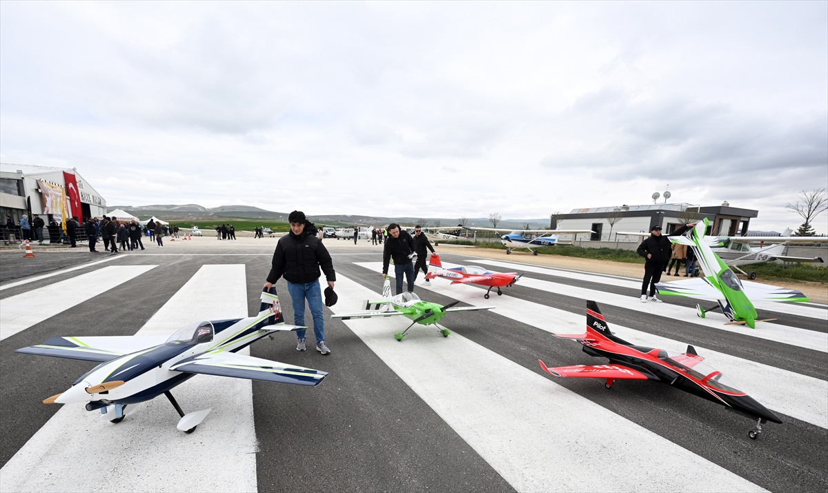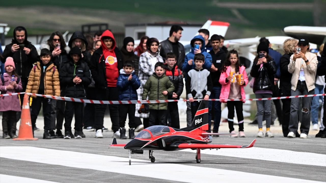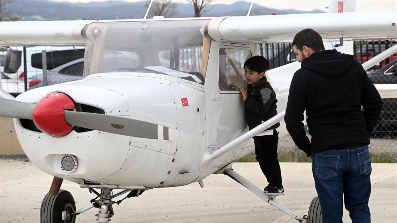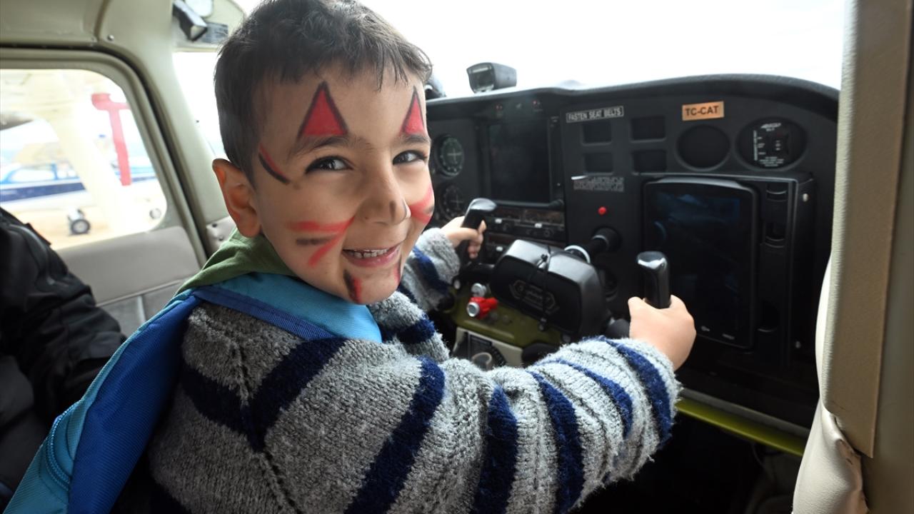 Daha sonra tek motorlu uçaklara binerek kenti havadan izlemek isteyen 50 çocuk, piste gelerek uçakların başına geçti.