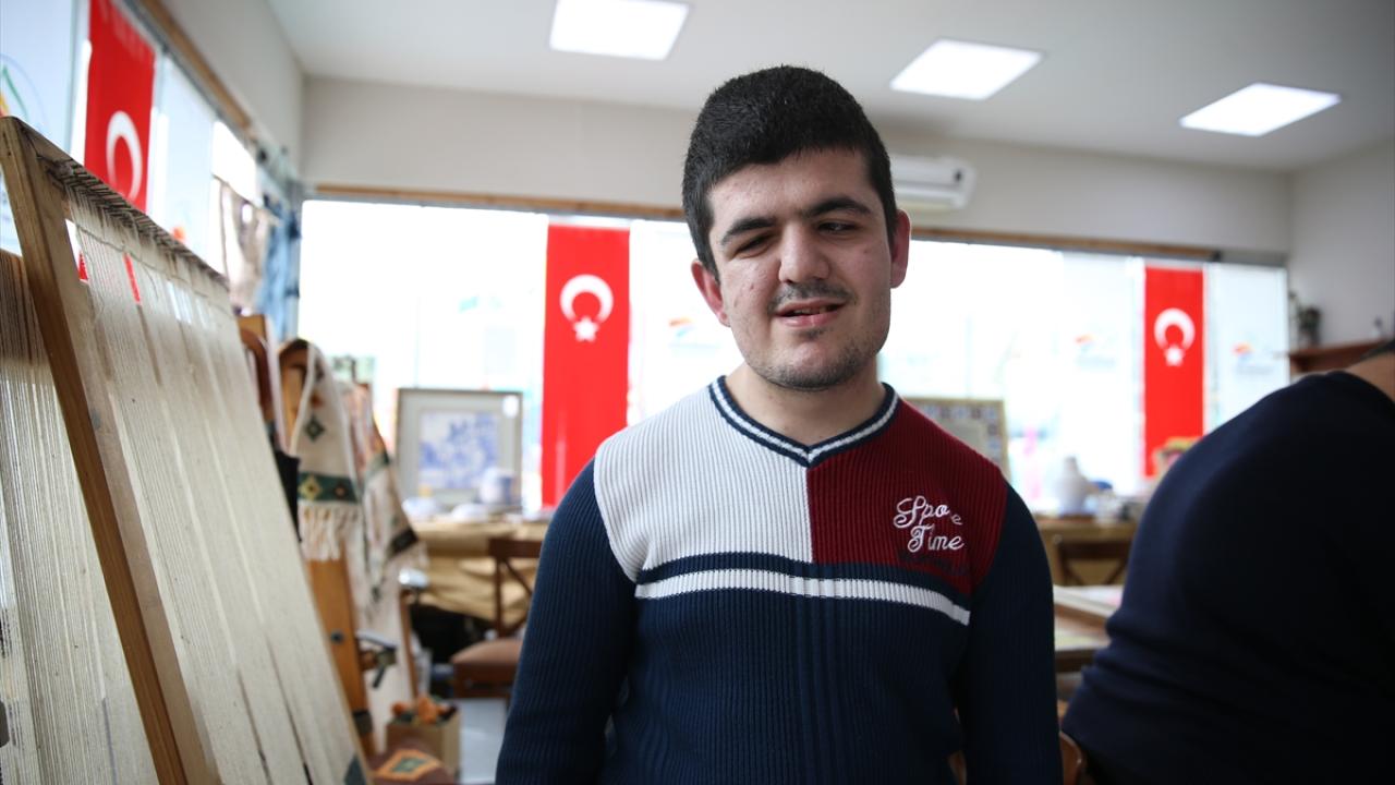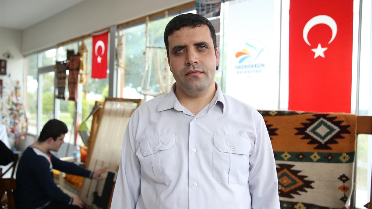 Görme engelli Sergen Özkan da atölyede kilim dokuma eğitimi aldığını anlattı.