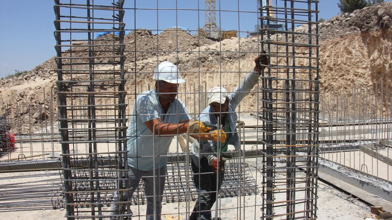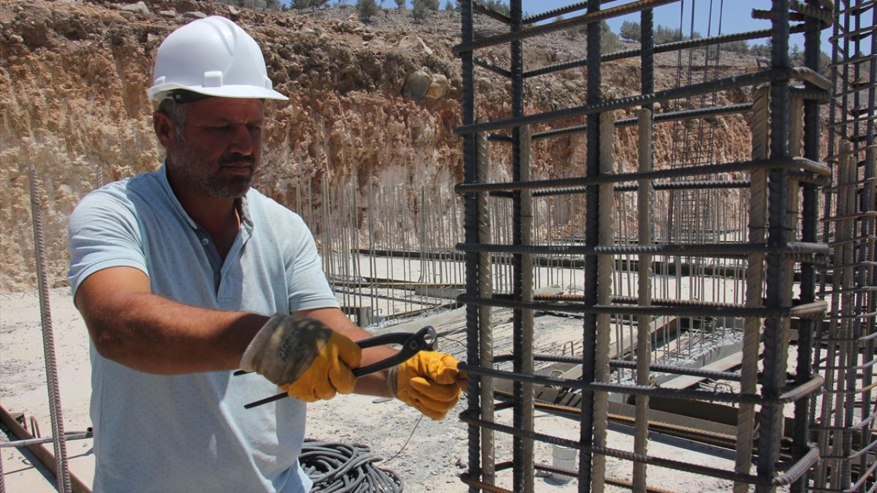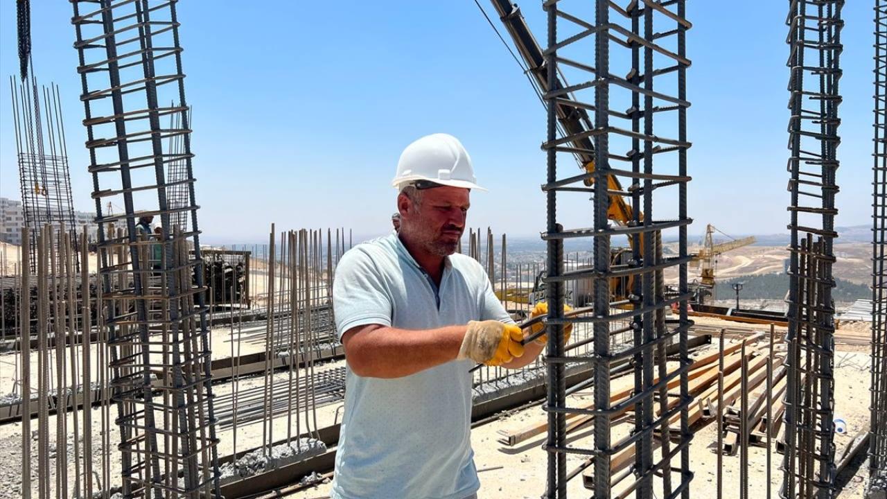 Kahramanmaraş merkezli depremlerden etkilenen ve yakınlarını kaybeden Hataylı demir ve kalıp ustaları, Kilis'te Toplu Konut İdaresince (TOKİ) hayata geçirilen konut projesinde görev alıyor.