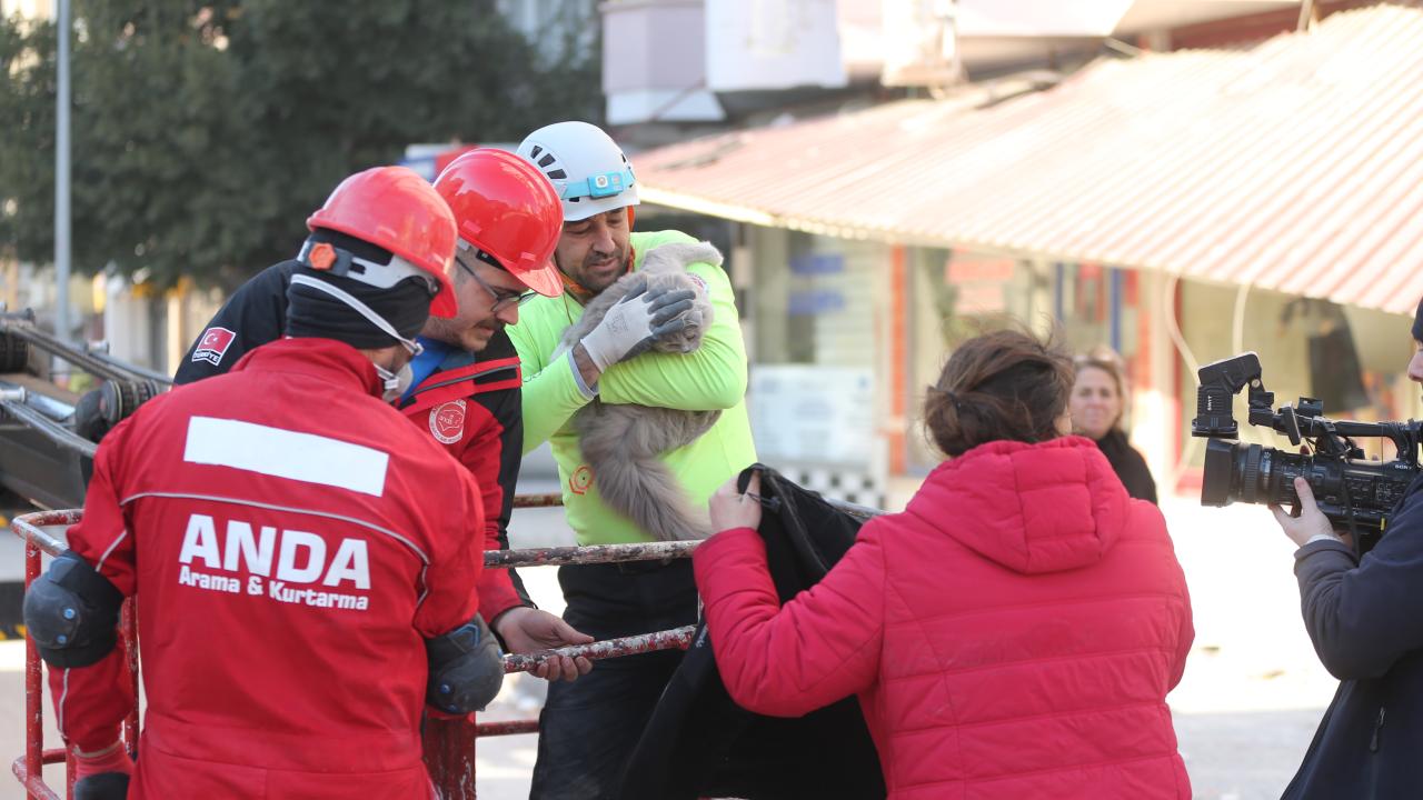 'Asrın felaketi' olarak nitelenen Kahramanmaraş merkezli depremlerden etkilenen Osmaniye'de, binada mahsur kalan kedinin yardımına arama kurtarma ekipleri yetişti. Kedi, kısa süreli çalışmanın ardından kurtarıldı.