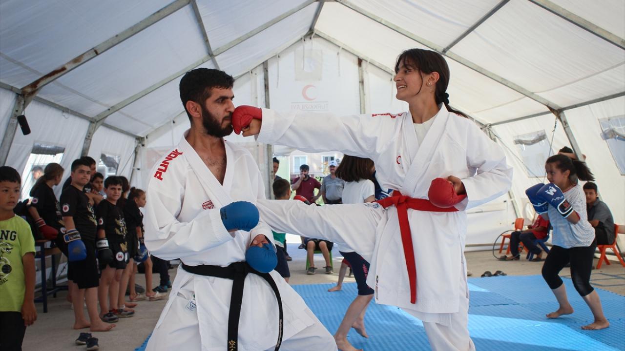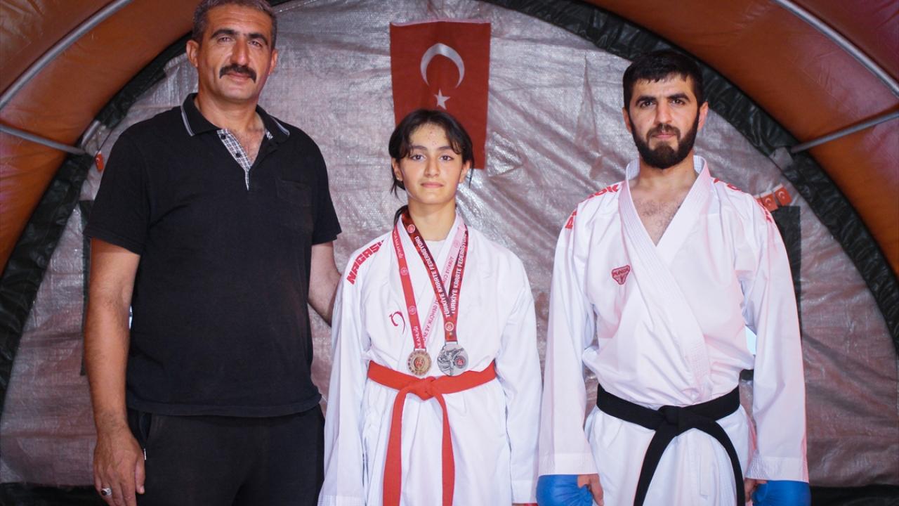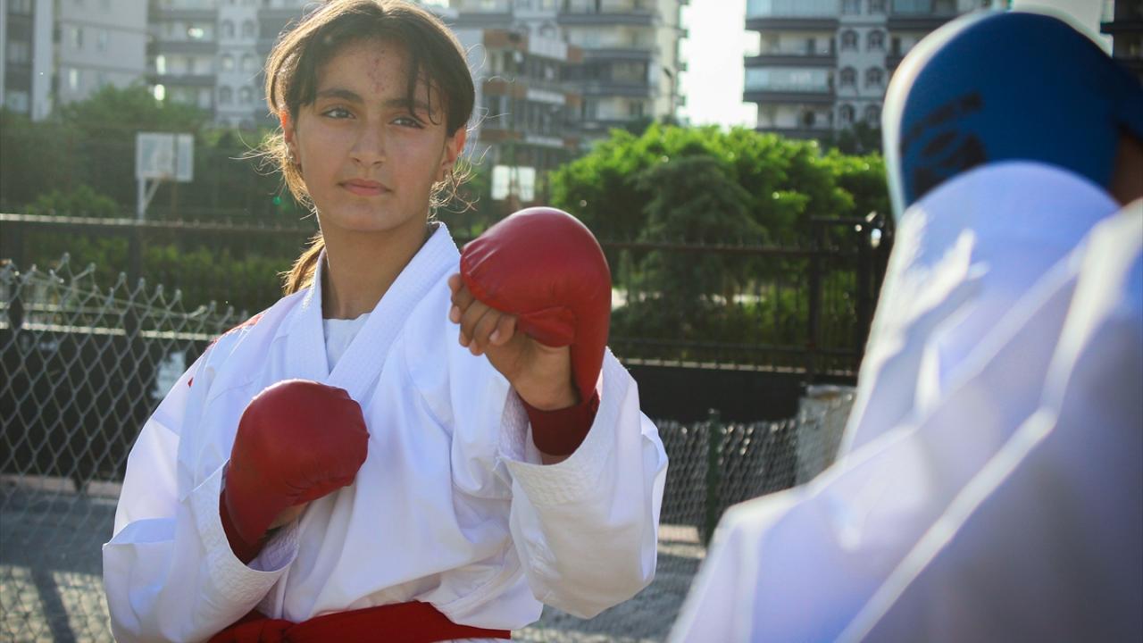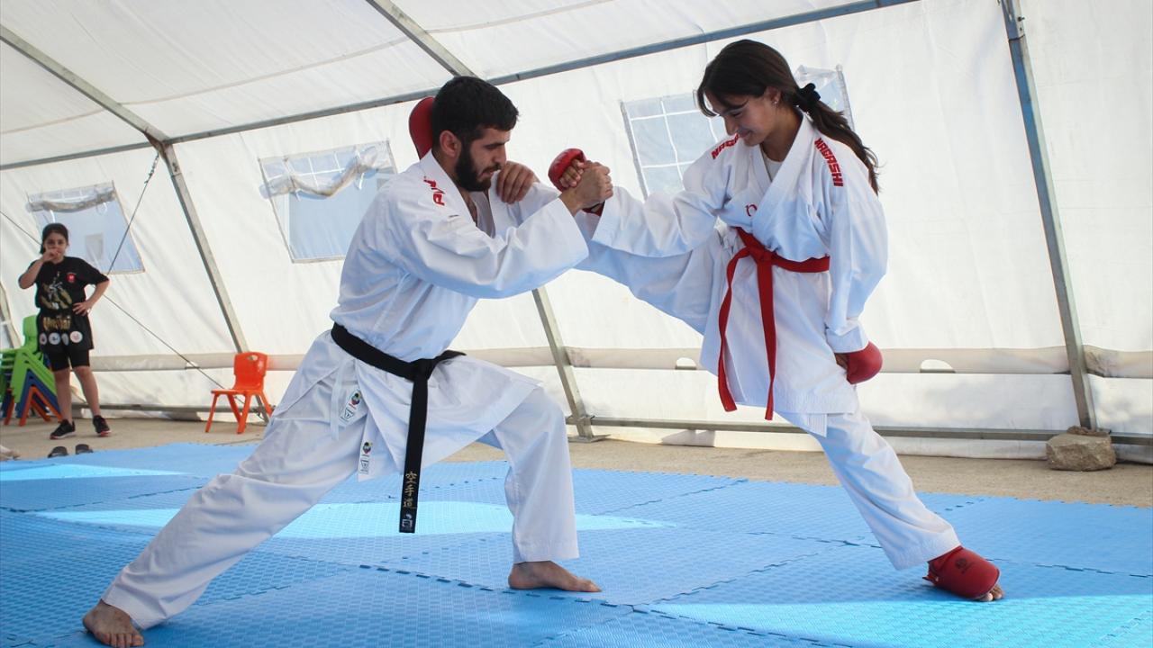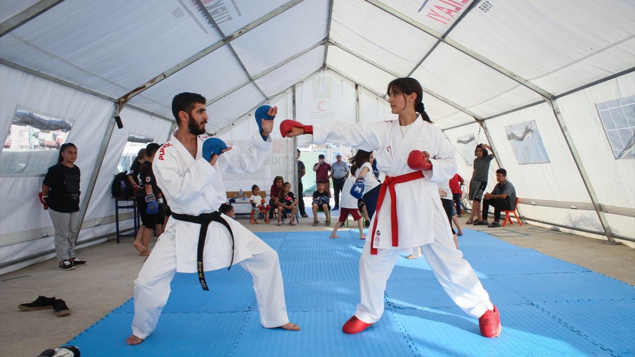 Kahramanmaraş merkezli depremlerde konutlarının hasar görmesi sonrası ailesiyle çadırda kalan 12 yaşındaki Yağmur Fahlioğulları, Balkan Çocuklar Karate Şampiyonası'ndan madalya hedefiyle antrenmanlarını sürdürdü.