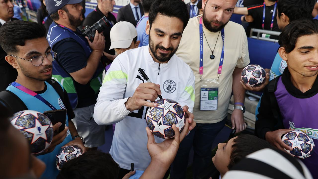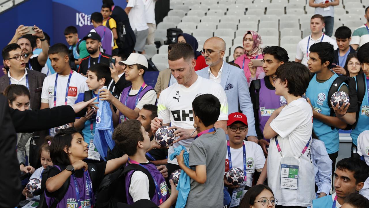 UEFA`nın davetlisi olarak Manchester City ile Inter takımlarının antrenmanlarını izleyen depremzedeler, futbolcularla da bir araya geldi.