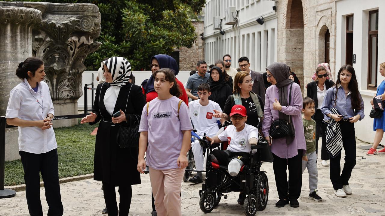 Milli Saraylar Başkanlığı desteğiyle yapılan gezide, Ayasofya Camii ve Topkapı Sarayı`nı ziyaret eden depremzedelere, kurum tarafından hazırlanan kitap seti hediye edildi.