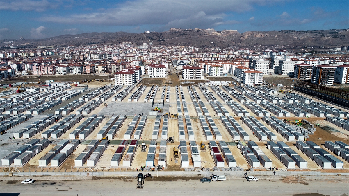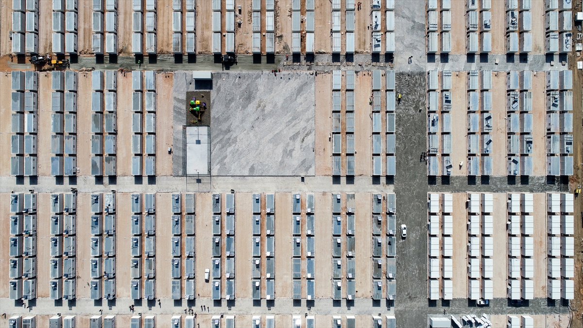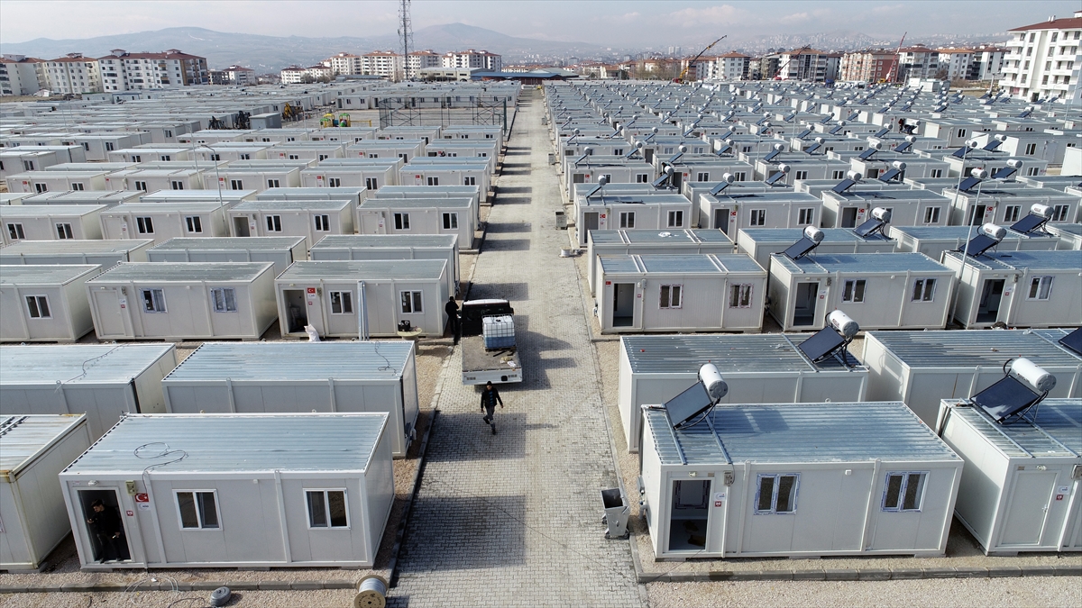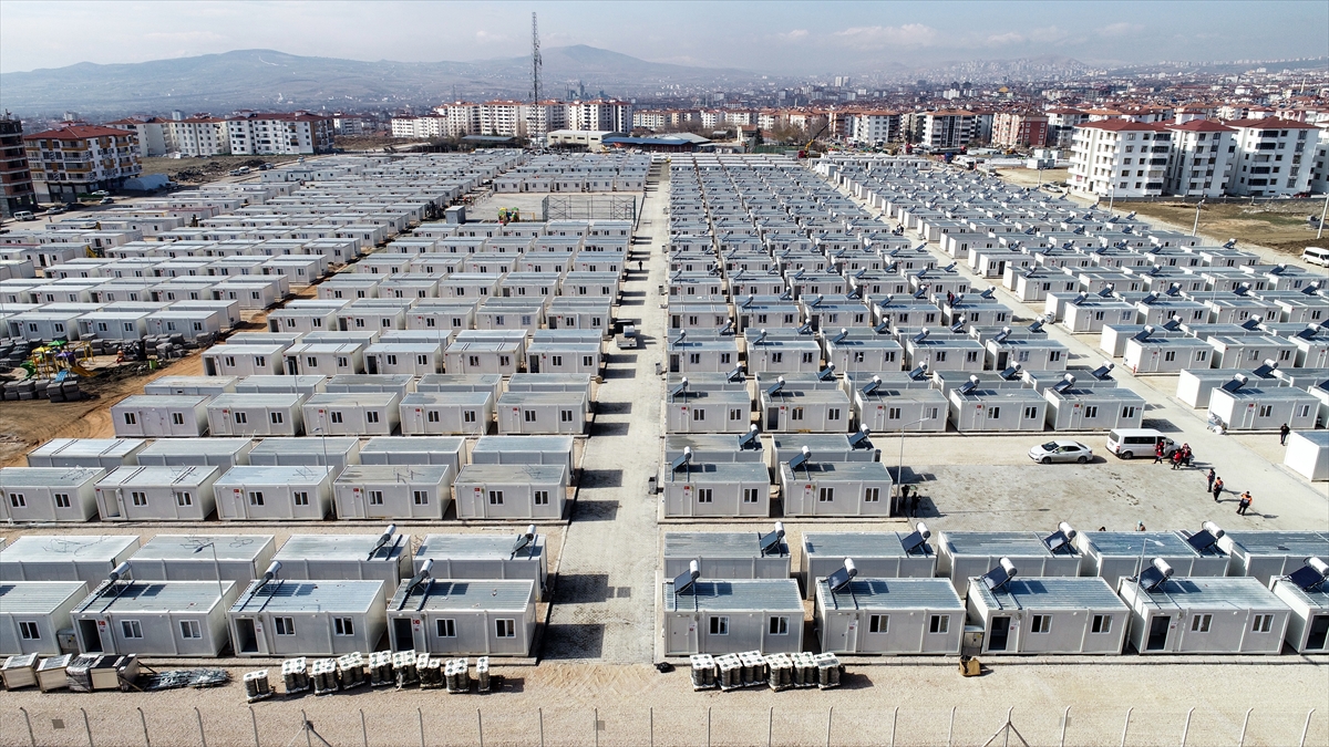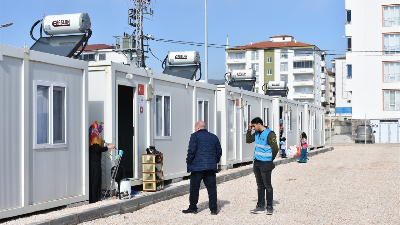 Vatandaşların ilk olarak çadır kentte daha sonra yurtlarda misafir edildiğini dile getiren Kömürlü, geçici barınma merkezi olarak konteynerlerin kurulumunun devam ettiğini bildirdi.