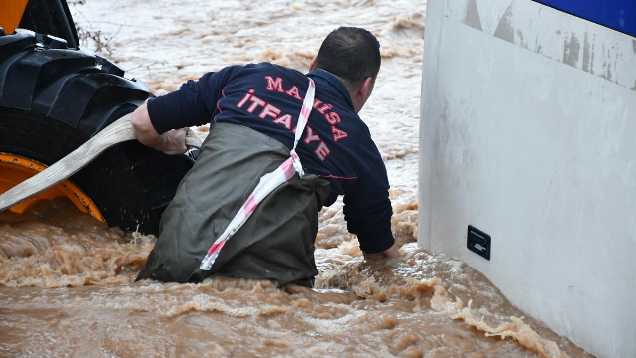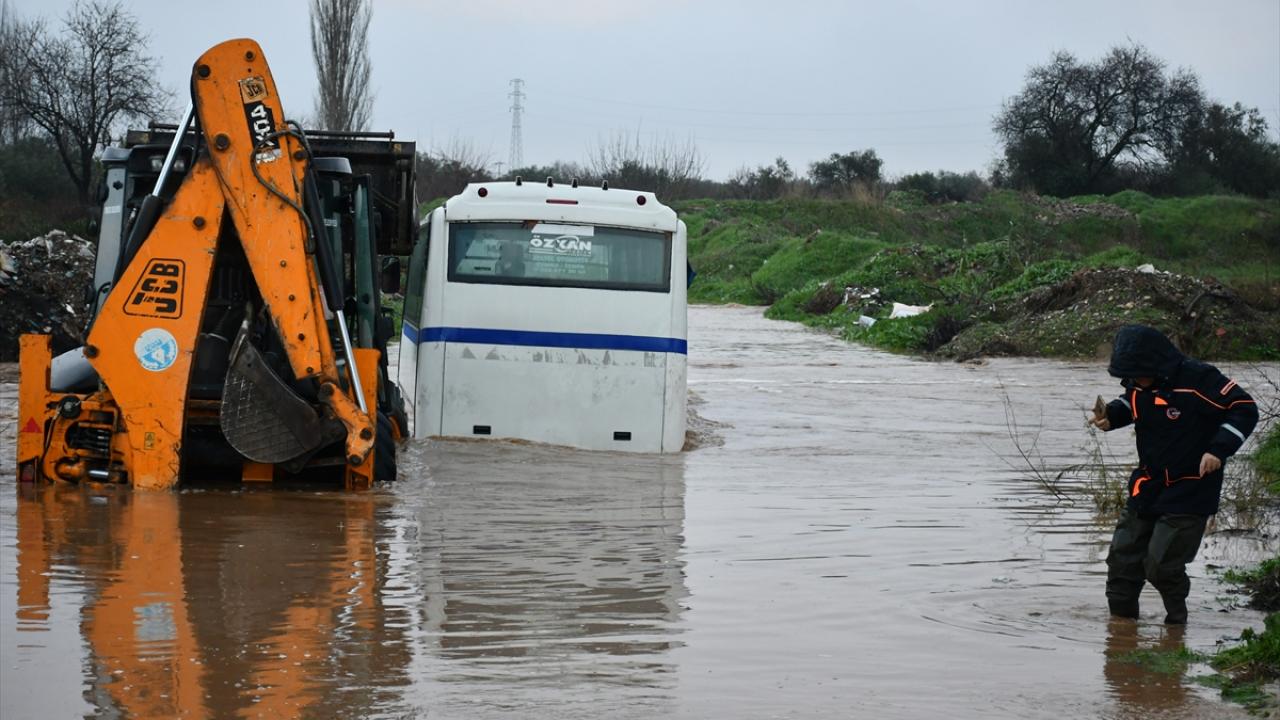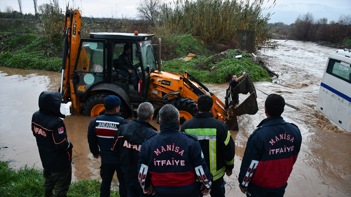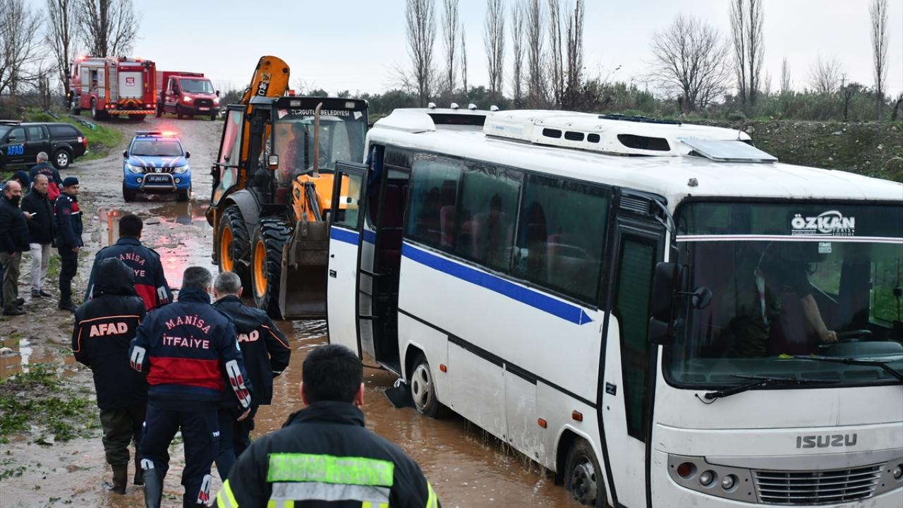 Manisa'nın Turgutlu ilçesinde etkili olan sağanak nedeniyle debisi yükselen Karacaali Deresi'nde mahsur kalan midibüsteki 18 kişi, itfaiye ekiplerinin müdahalesiyle kurtarıldı.