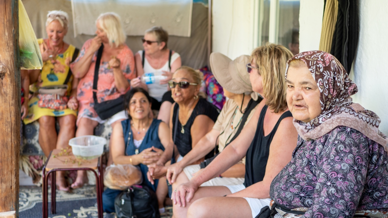 Dereköy`ün eski evlerinden birisine misafir de edilen turistler ev sahipleriyle sohbet etme ve Türk misafirperverliğiyle tanışma fırsatı buluyor.