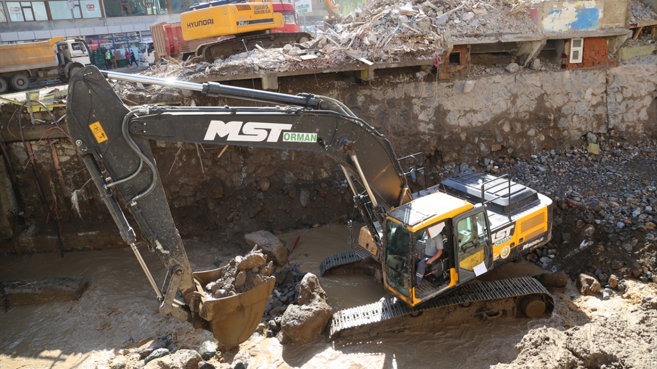 Giresun'un Dereli ilçesinde selin sürüklediği hafriyatın kaldırılması çalışmalarında sona gelindi.