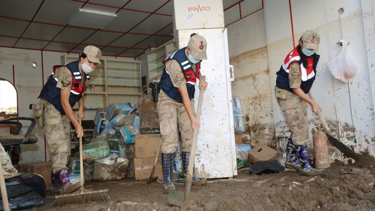 Caddede biriken ve iş yerlerine dolan hafriyatın tamamına yakınını kaldıran ekipler, çamurdan arındırma çalışmalarına devam ediyor. İlçe merkezindeki yollara bugün asfalt serilmesi planlanıyor.