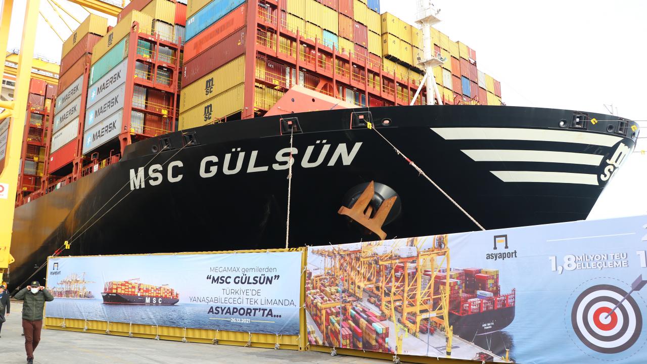 "24 bin konteyner kapasiteli, dünyanın en büyük gemilerinden biri geldi. Hem Türkiye`mize hem Asyaport`a hem MSC`ye hayırlı olsun. Dünyada krizlerin yaşandığı böyle bir dönemde ülkemize gelen gemilerin sayılarının artması, getirilen ve götürülen yüklerin artması hepimizi gururlandırıyor ve hepimizi büyük umutlara sevk ediyor. MSC çok büyük bir değer katıyor, çok büyük bir katma değer sağlıyor, onun için kendilerine teşekkür ediyorum. İnşallah bu konteynerlerin sayısı artacak ve Türkiye daha da büyüyecek."