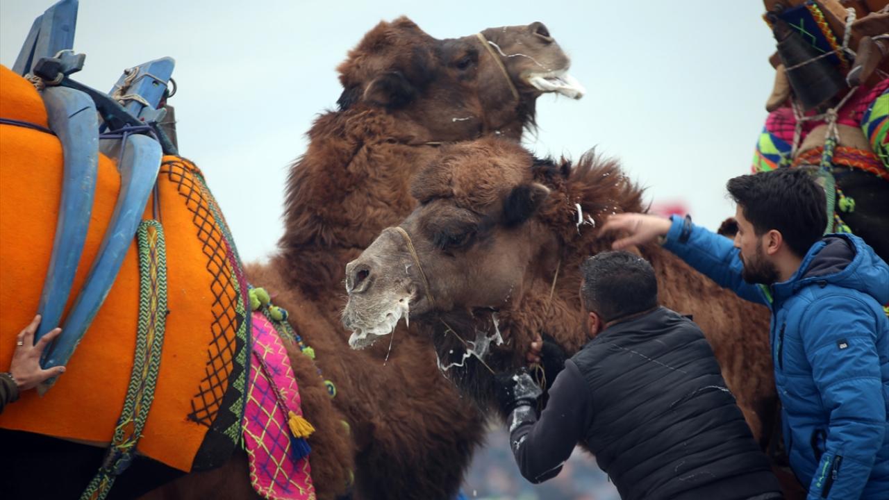 Zaman zaman rakiplerinden kaçan ve sahiplerinin üzerine yürüyen develer, heyecanlı anlar yaşattı.