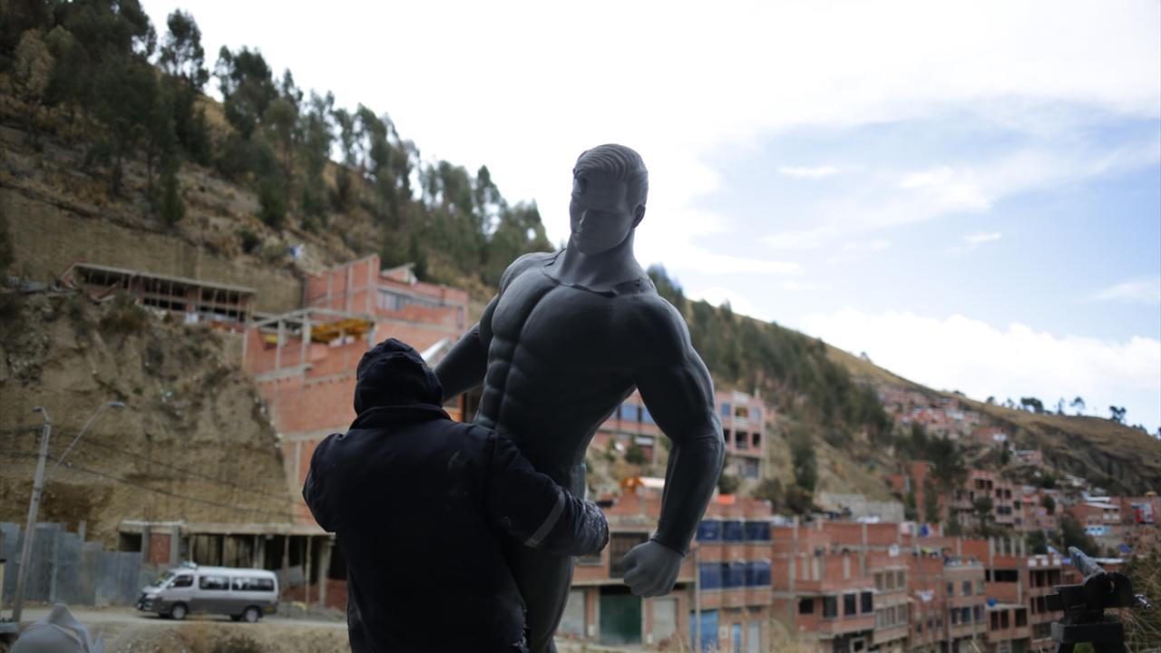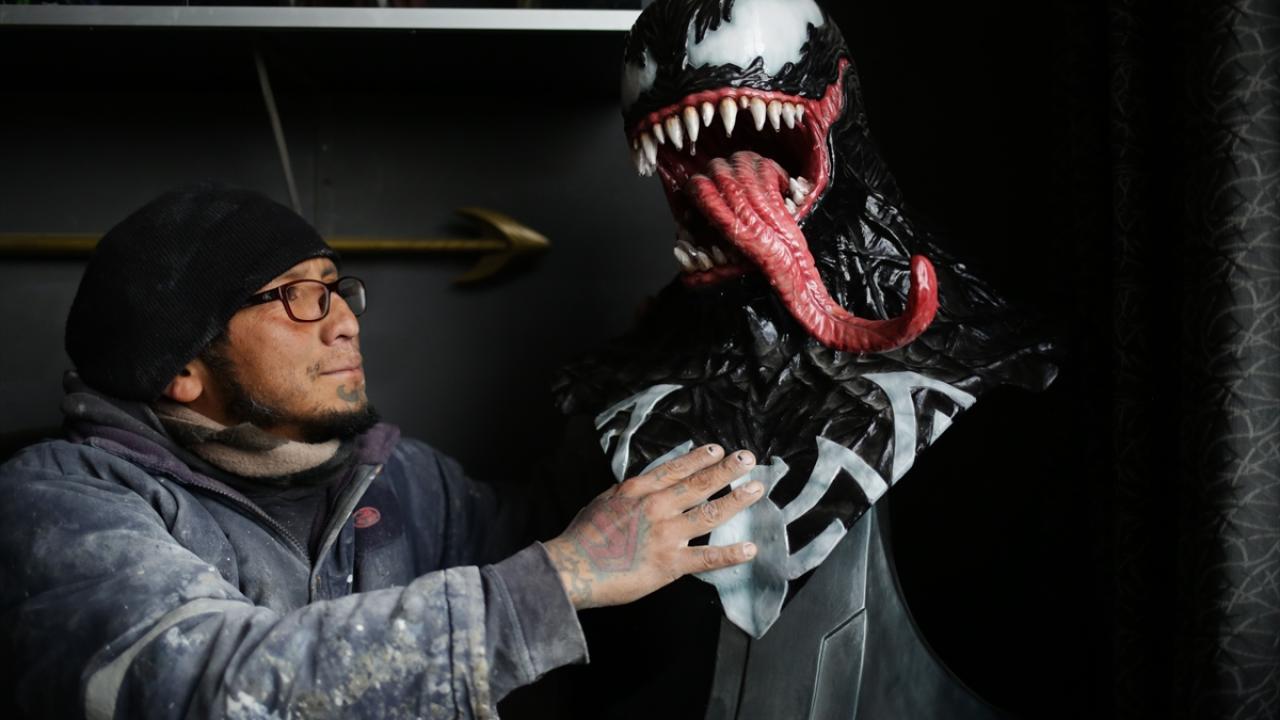 Bolivya'nın La Paz kentinde Heykeltraş Ramiro Sirpa, atölyesinde yaptığı Marvel evreninden Venom karakteriyle dikkat çekiyor.