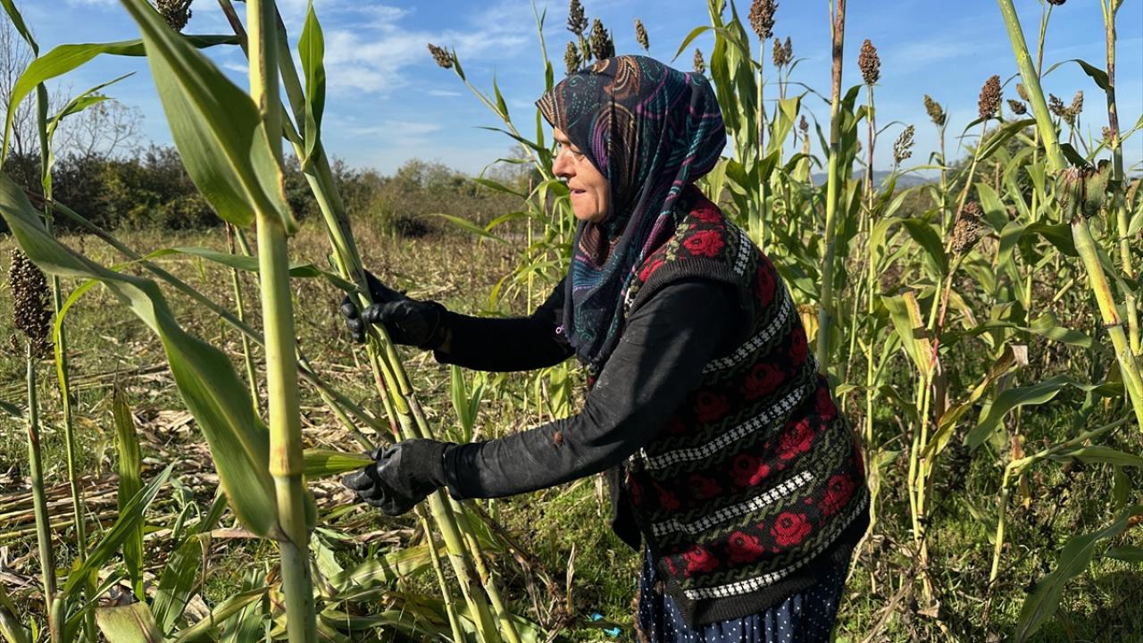 Düzce'nin Çilimli ilçesinde aldığı devlet desteğiyle 20 dönüme ektiği şeker kamışından pekmez yapan girişimci Reyhan Kutlu, yılda yaklaşık 1 ton üretim yapıyor.
