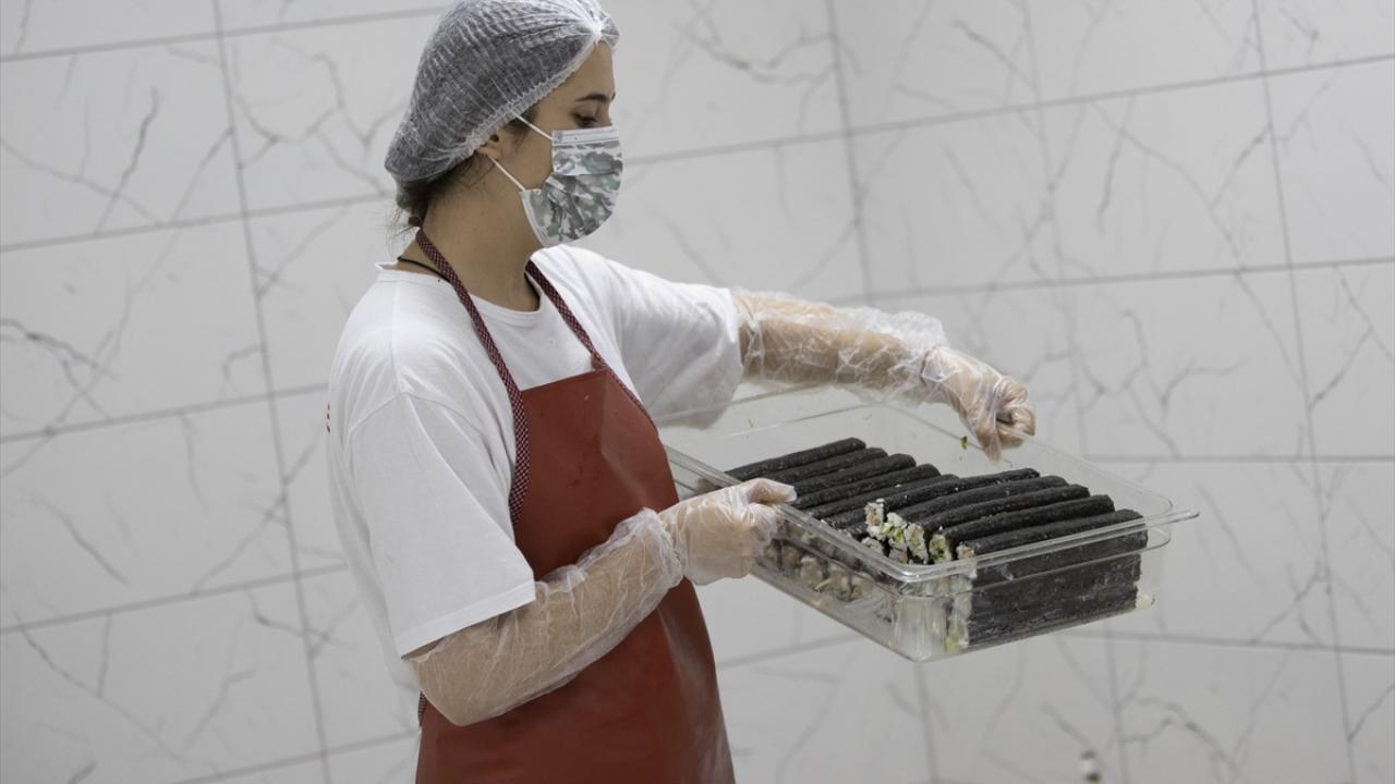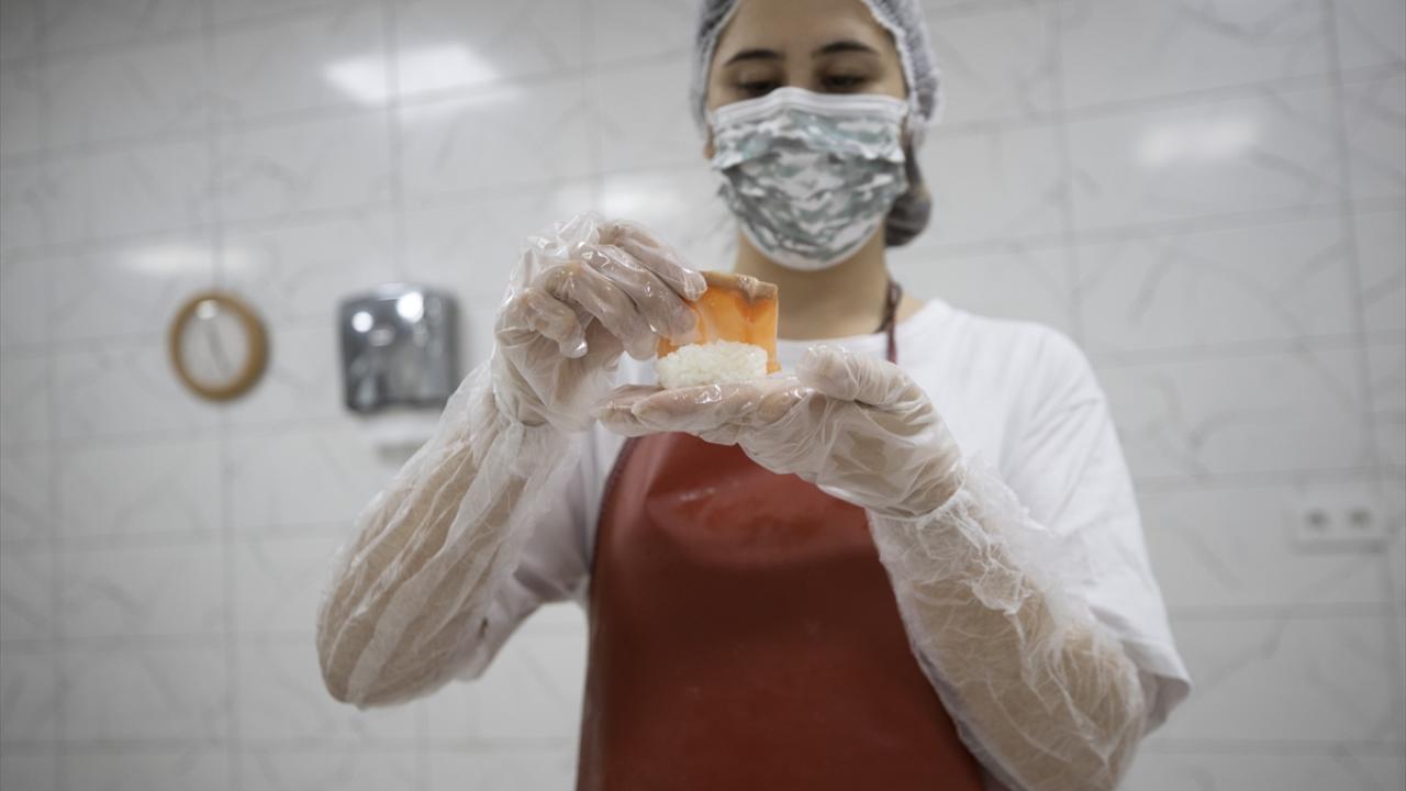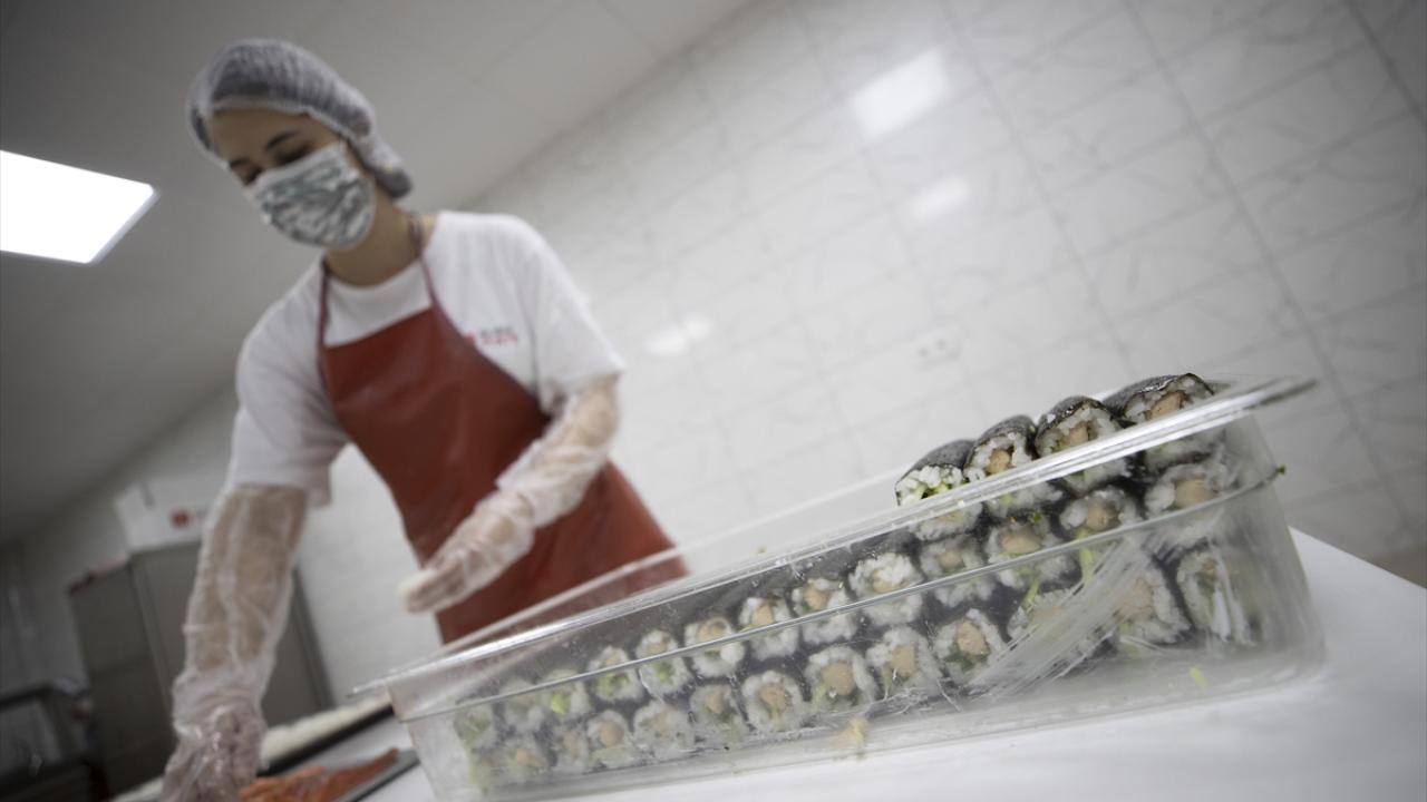 Küçük ve Orta Ölçekli İşletmeleri Geliştirme ve Destekleme İdaresi Başkanlığından (KOSGEB) ve ailesinden destek alan genç girişimci, 2021 yılında yurt dışından suşi yapan makineleri alarak Antalya Organize Sanayi Bölgesi`ndeki fabrikada üretim yapmaya başladı.