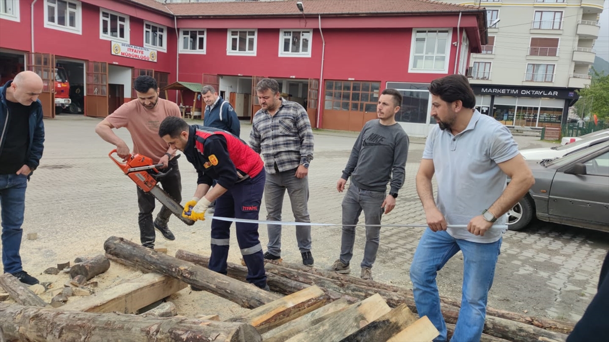 Eğitimde, itfaiyeci ve gönüllülerden oluşan ekip, sahada bulunan ahşap malzemeyi önce uygun boyutlarda kesti. Sonrasında kesilen ahşaplarla girilmesi planlanan alanda tahkimat ve domuzdamı yapılarak tavanın çökmesi engellendi.