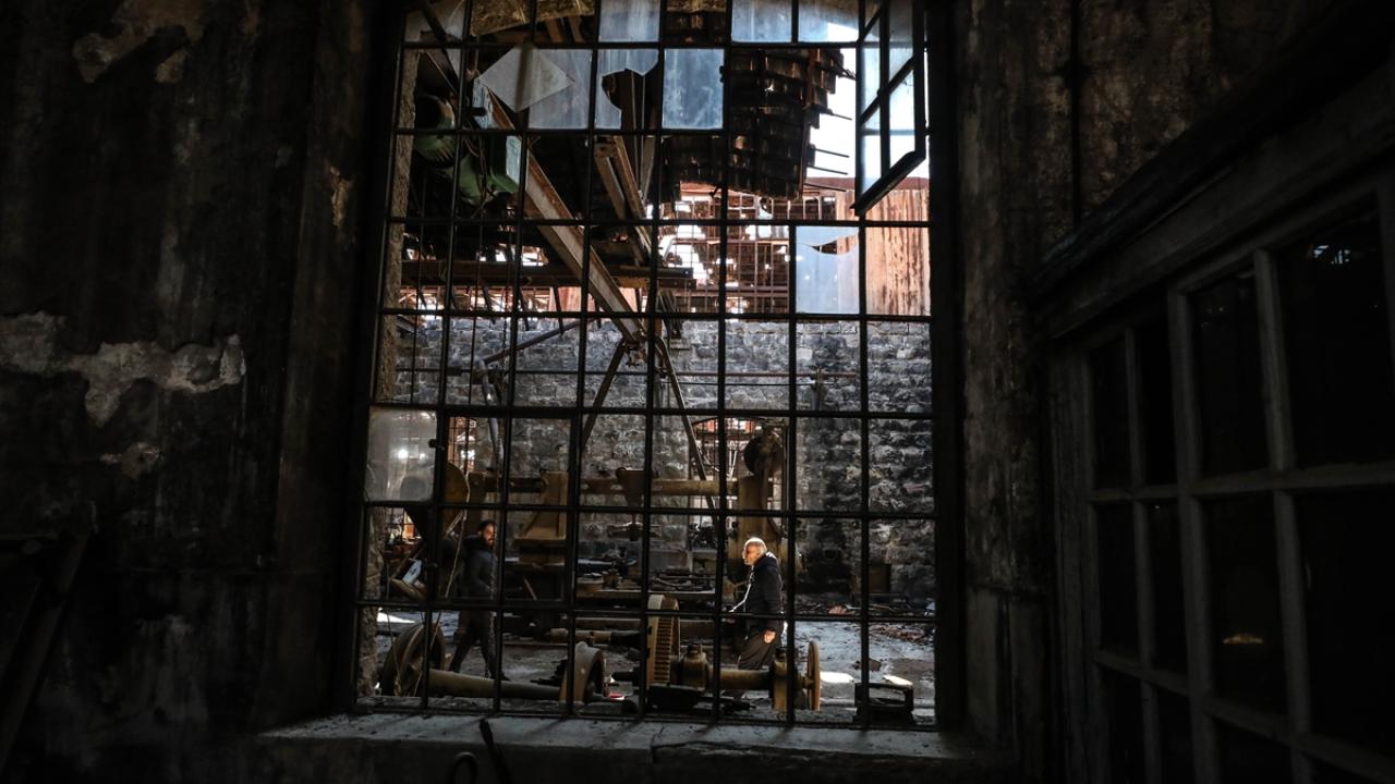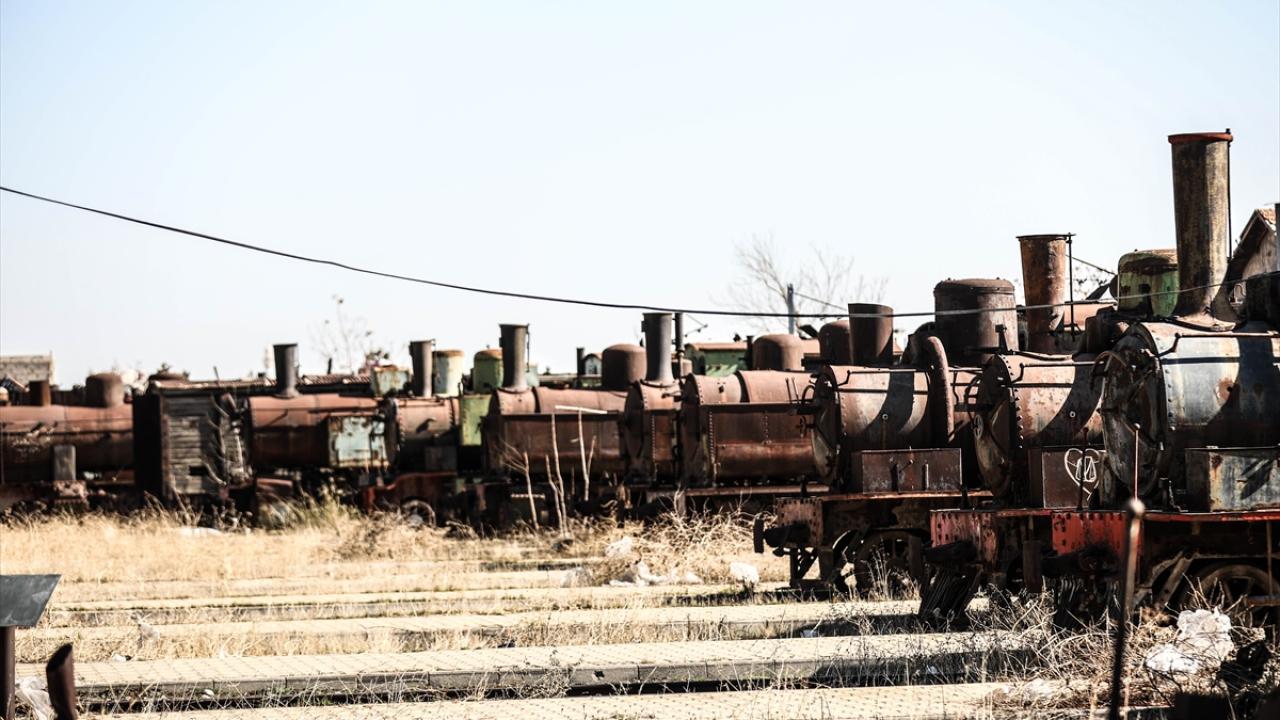 Raylarda çürümeye terk edilmiş vagonlar, ihmal edilmiş ve zarar görmüş tarihi binalar ile kaderine terk edilmiş lokomotifler dron görüntülerine yansıdı.