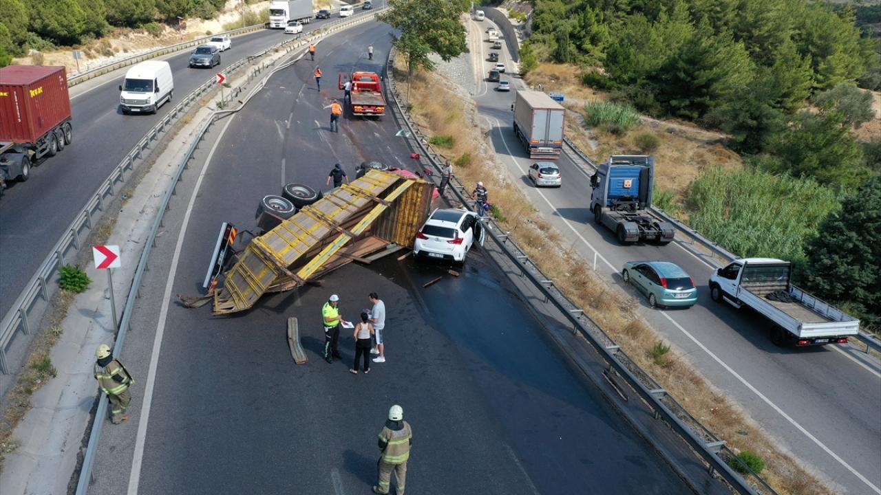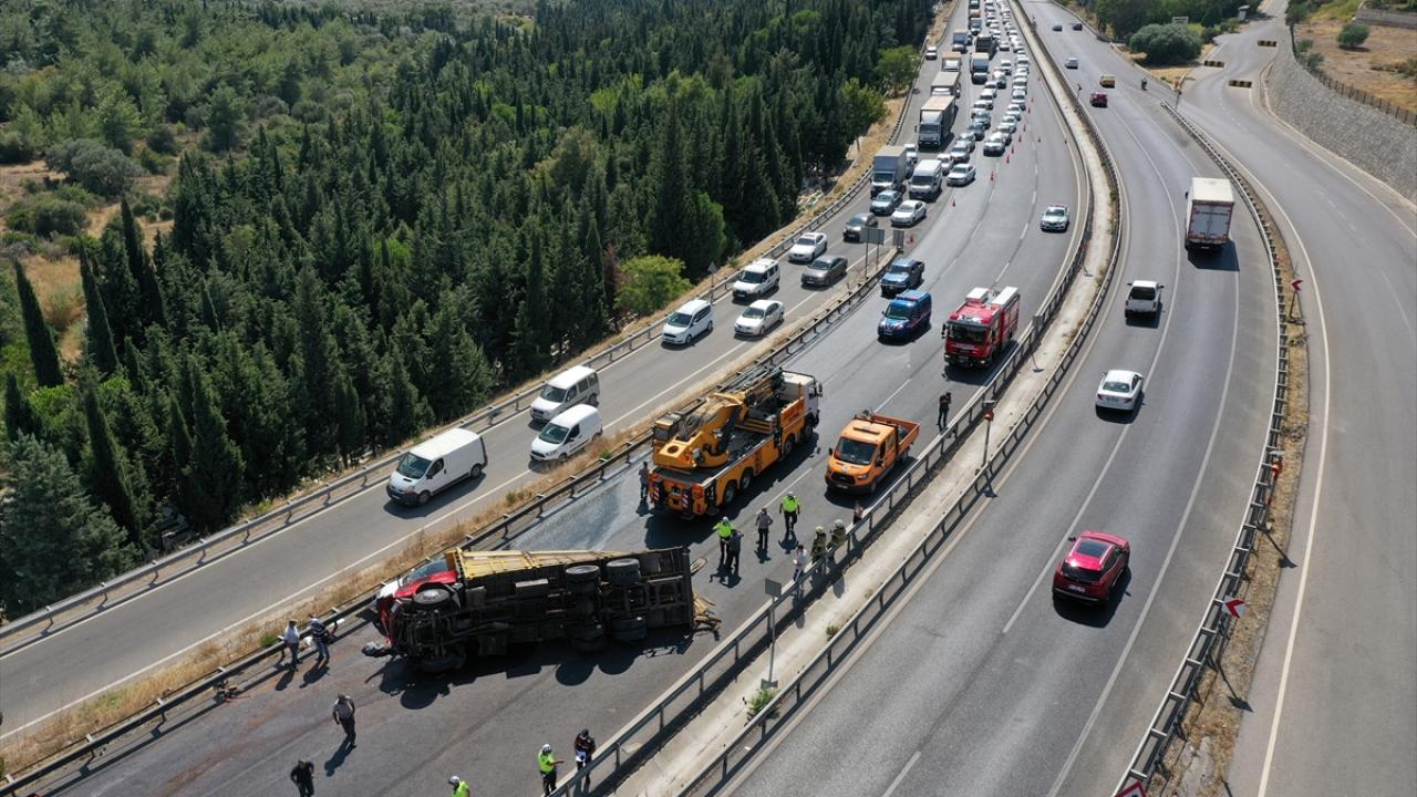 Öte yandan, kaza nedeniyle İzmir-Manisa yolunda uzun araç kuyrukları oluştu, yolun kapanması sebebiyle trafik akışı yan yoldan sağlandı.