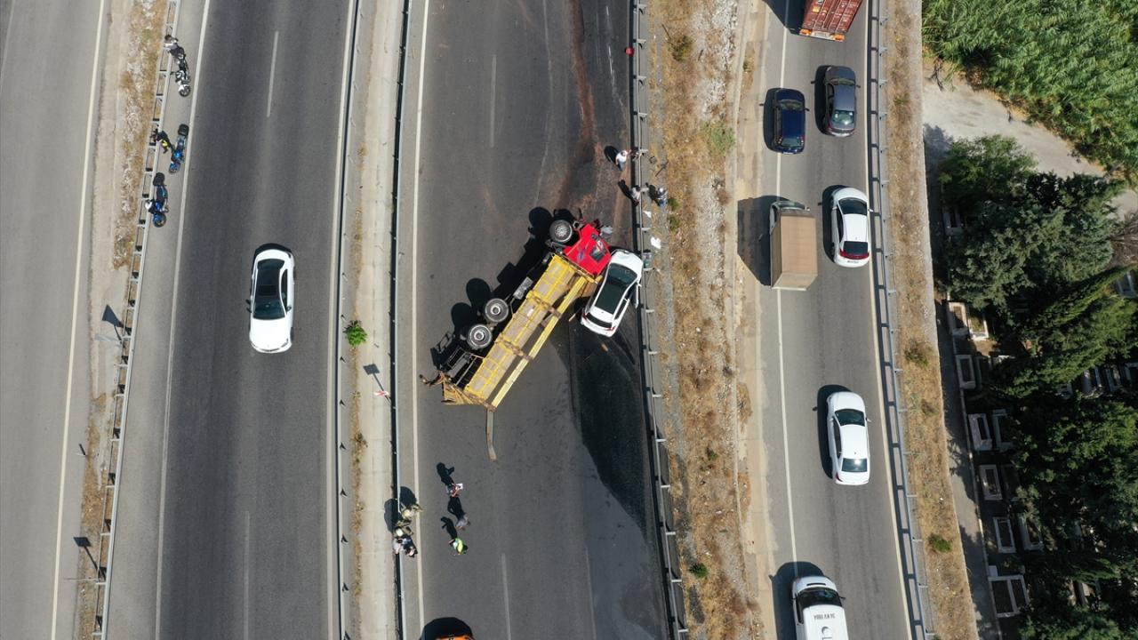 Ardından bariyerlere çarpıp refüjü aşan ve karşı şeride geçen kamyon, devrildikten sonra sürüklenerek Yekta Eroğlu idaresindeki 35 ANJ 637 plakalı otomobile çarptı.