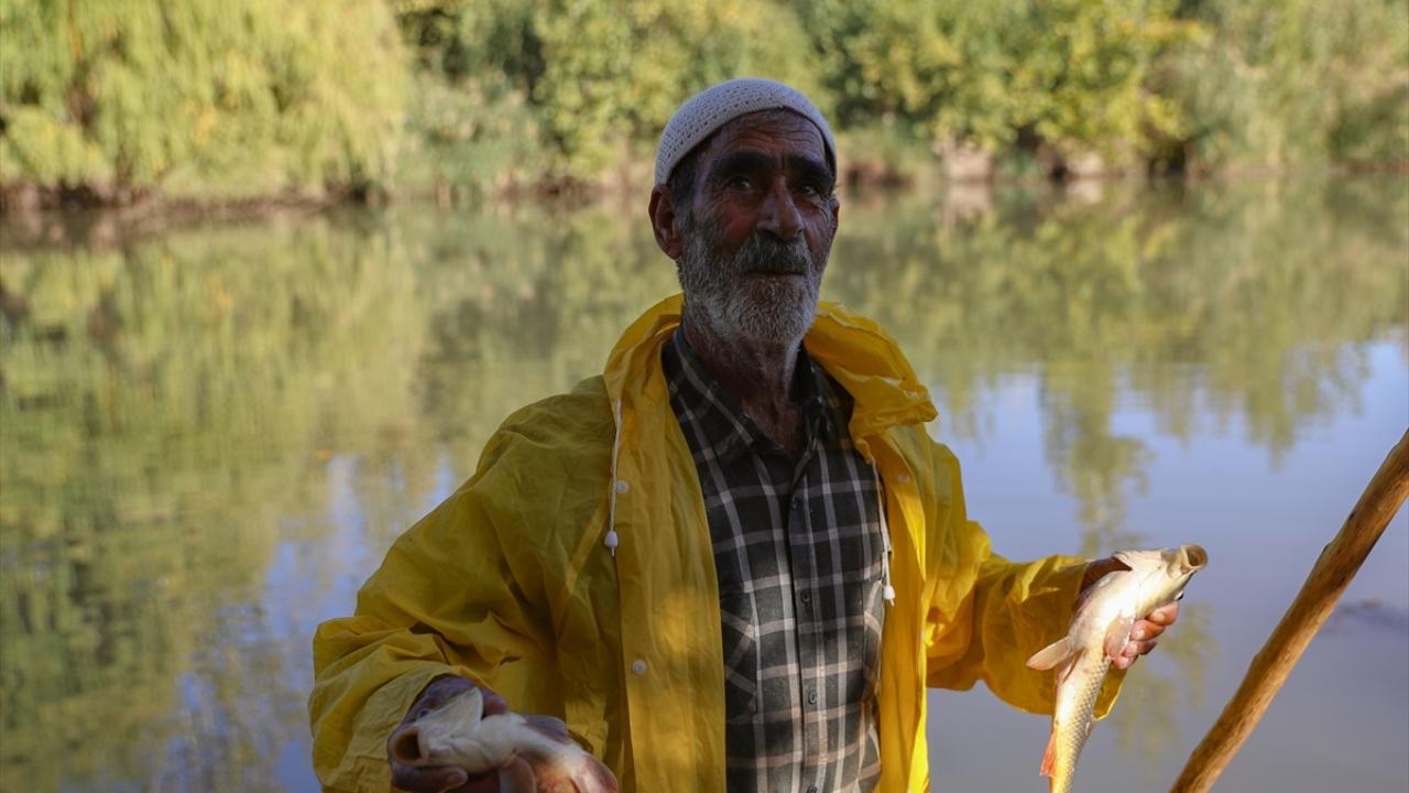 Diyarbakır'da, Dicle Nehri'nde araç lastiklerinden yapılan "kelek" adlı sal üzerinde balık avlayan 67 yaşındaki Ali Malkoç, baba mesleğini 55 yıldır sürdürüyor.