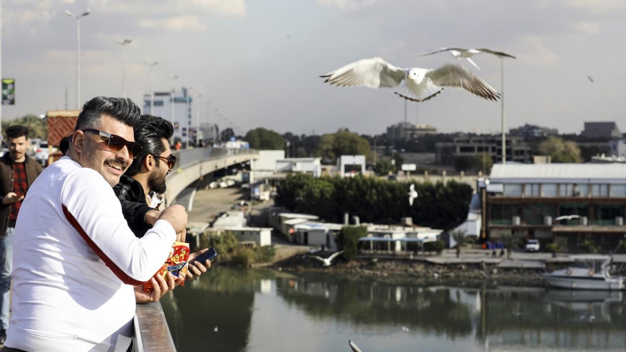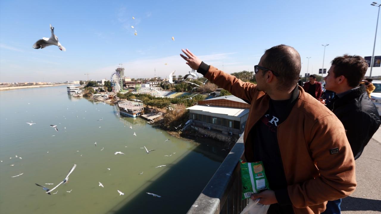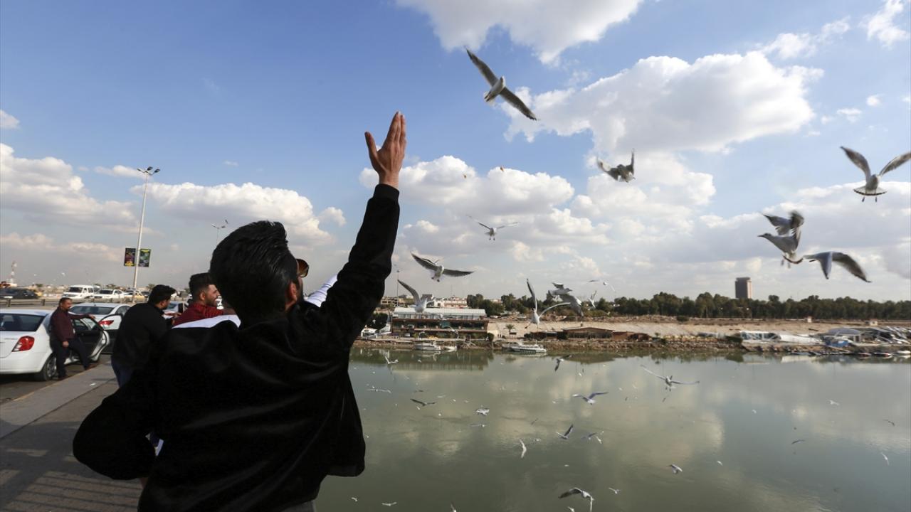 Irak’ın başkenti Bağdat’ta Dicle Nehri’nin martıları, vatandaşların attığı ekmek parçalarını kapmak için birbiriyle yarışırken, kanat çırpınışlarıyla şiddet yorgunu kente canlılık ve sevgi işliyor.