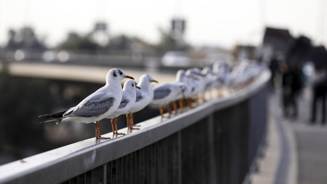 Uzak diyarlardan göç ederek gelen Dicle Nehri’ne misafir olan martılar, Cadiriye Köprüsü’nde adeta görsel şölen yapıyor.