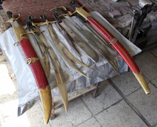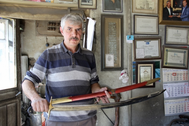 Türkiye'nin önemli bıçak üretim merkezlerinden Sivas'ta bıçak ustası İsmail Gölebatmaz, TRT 1 ekranlarında yayınlanan "Diriliş Ertuğrul" dizisinde kullanılan balta ve kılıçları yapıyor.