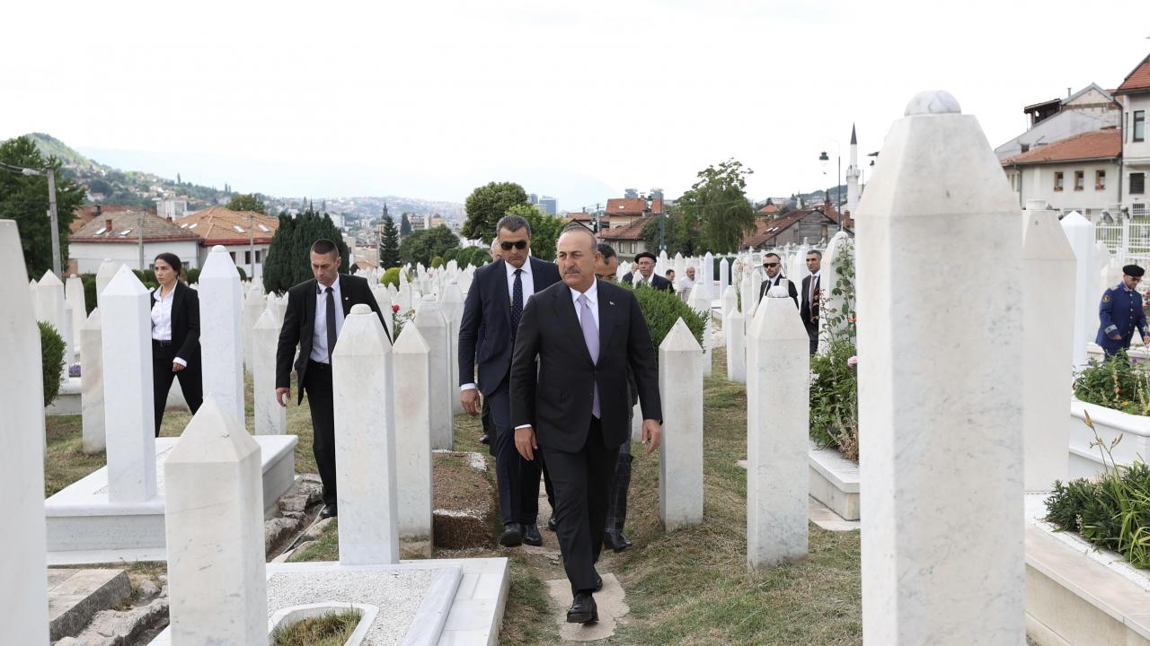 Dışişleri Bakanı Mevlüt Çavuşoğlu, Saraybosna’da Kovaçi Şehitliğinde rahmetli Cumhurbaşkanı Aliya İzetbegoviç’in kabrini ziyaret ettikten sonra tarihi Başçarşıda yürüyüş yaptı.