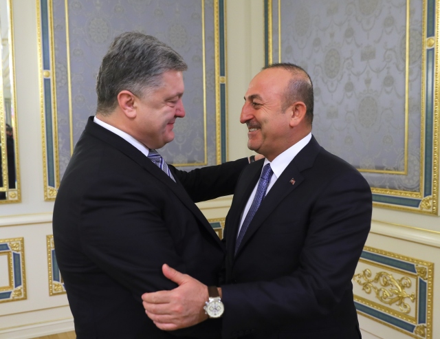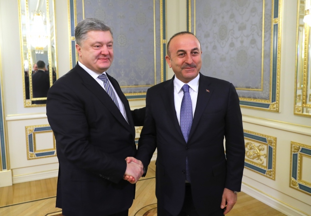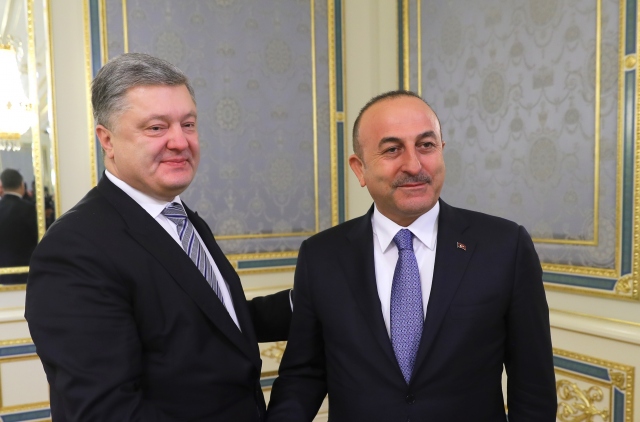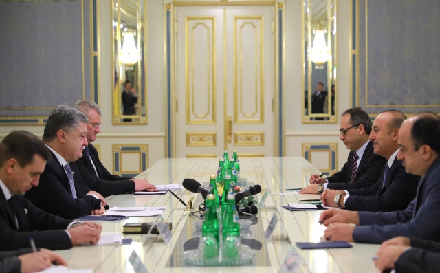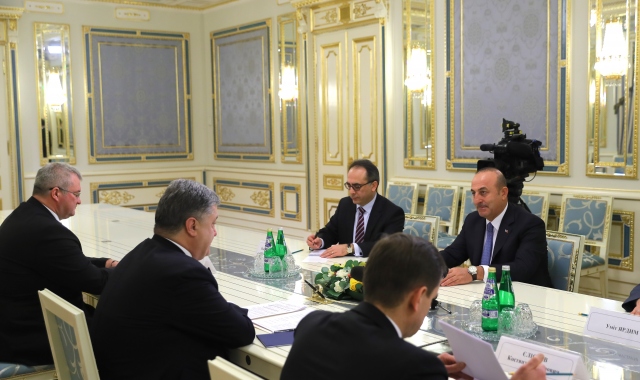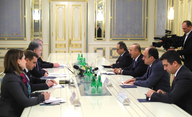 Dışişleri Bakanı Mevlüt Çavuşoğlu resmi ziyaret için geldiği Ukrayna'da, Ukrayna Devlet Başkanı Petro Poroşenko ile bir araya geldi.
