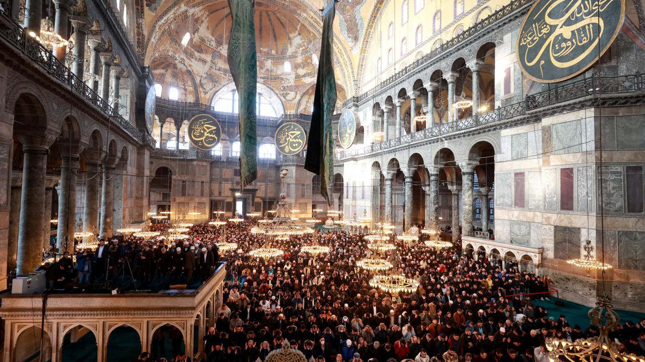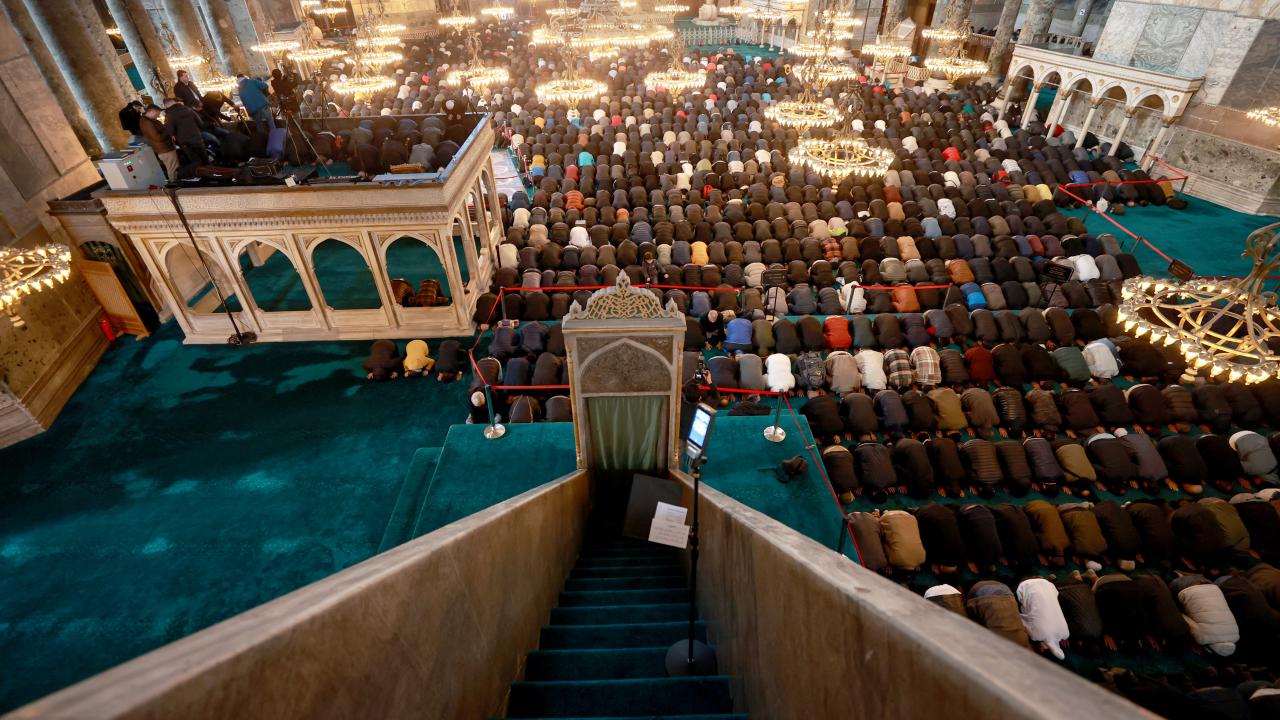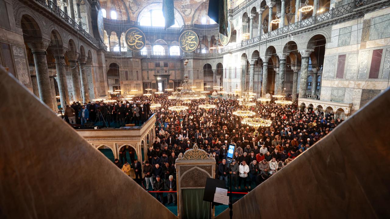 Ayasofya minberinden tüm insanlığa seslenmek istediğini söyleyen Erbaş, "Bütün dünya olarak miladi bir yılı daha geride bırakıyoruz. Dünyanın neresinde olursa olsun meydana gelen bir olay herkesi etkiliyor. Kötülükler çok hızlı yayılıyor. Geliniz hepimiz iyilik yolunda çalışalım ve iyi insanlar olalım. Yüce Allah, bütün peygamberleri yeryüzünde kötülük olmasın, iyilik olsun diye göndermiştir. Bizler de tüm insanlar olarak yeryüzünde iyilik egemen olsun diye çalışalım" diye konuştu.