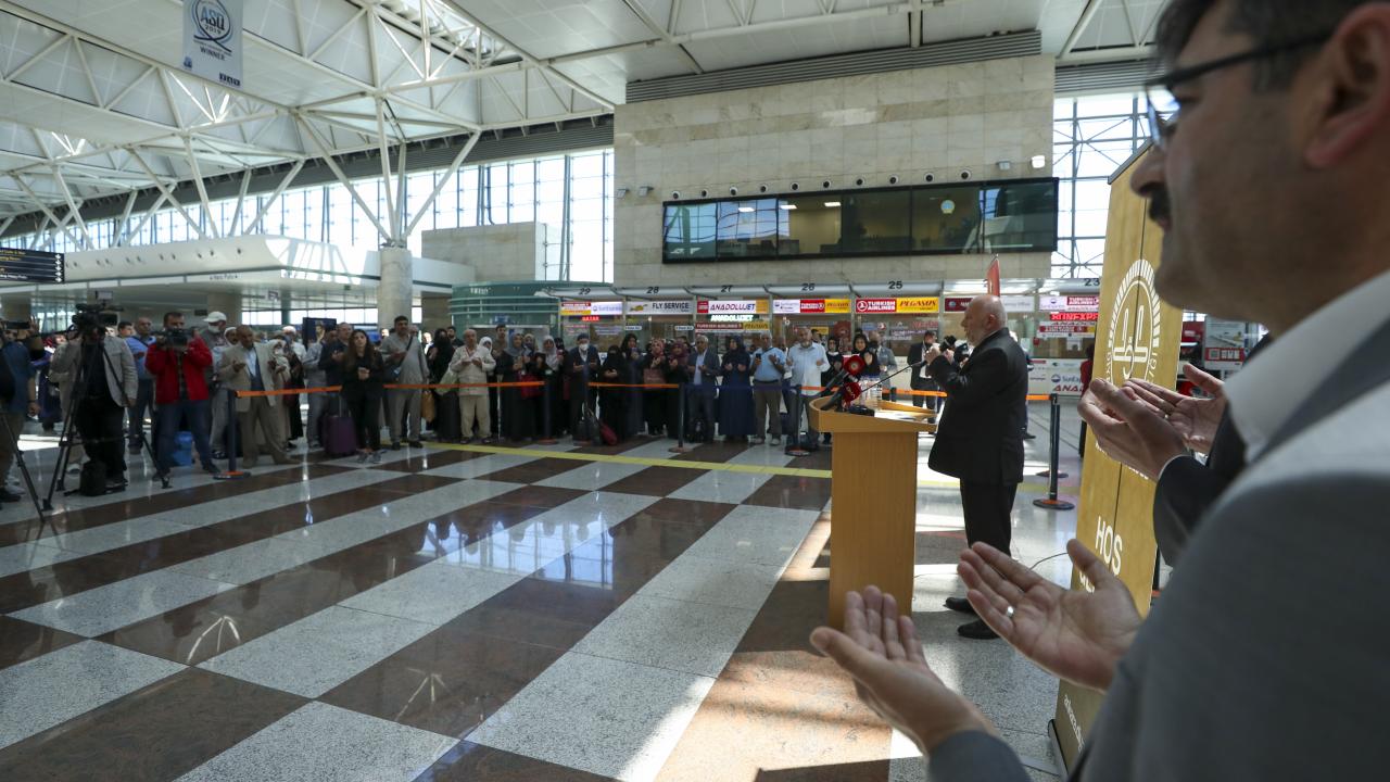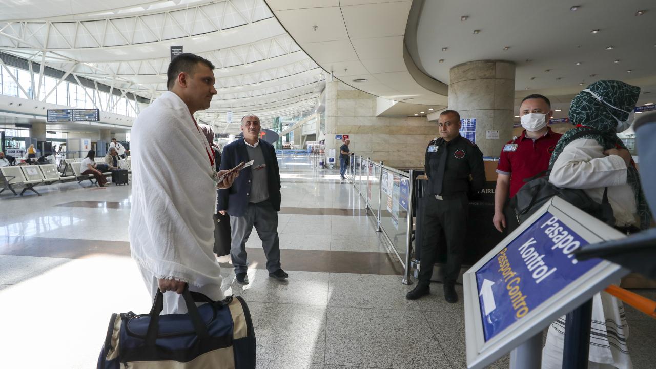 Salgın nedeniyle Aralık 2020'den itibaren ara verilen umre ziyaretlerinin yeniden başlatılmasının ardından Diyanet İşleri Başkanlığının organizasyonundaki ilk kafile, Esenboğa Havalimanı'ndan kutsal topraklara yola çıktı.