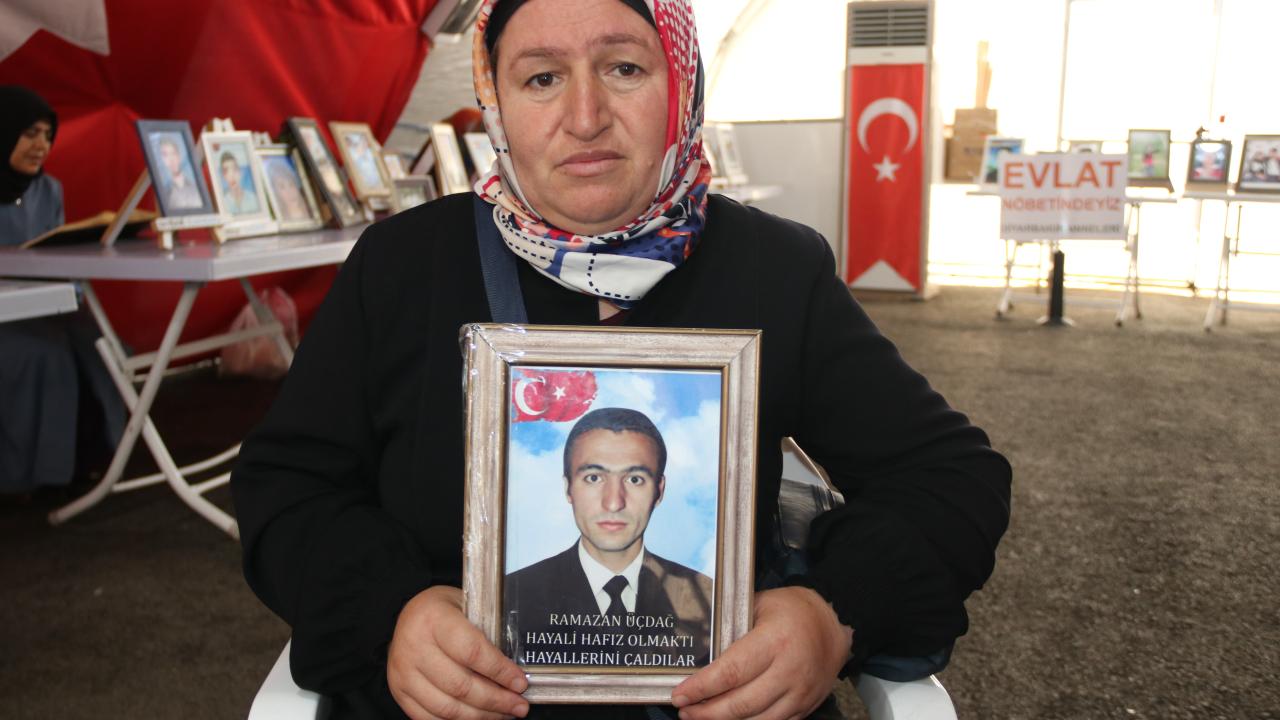 Ellerinde çocuklarının fotoğrafıyla bekleyişini sürdüren annelerden Mevlüde Üçdağ, oğlu Ramazan`a kavuşuncaya kadar eyleme devam edeceğini söyledi.