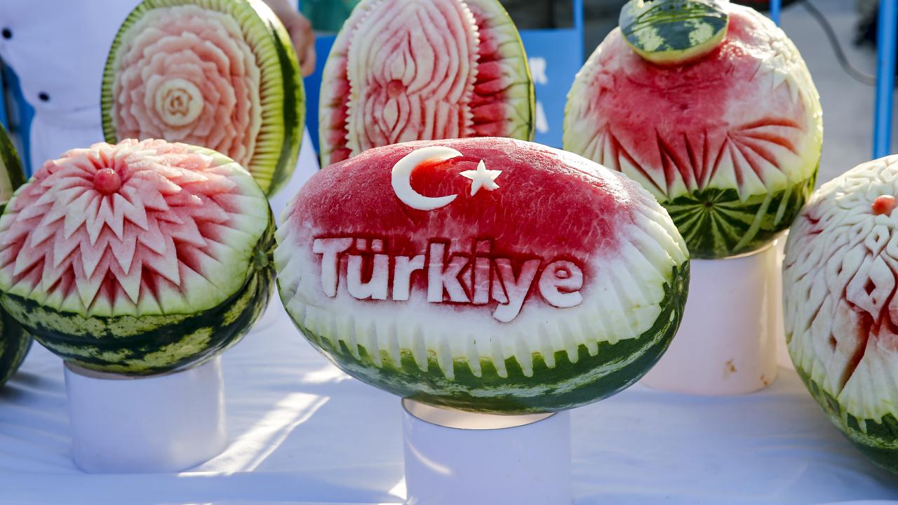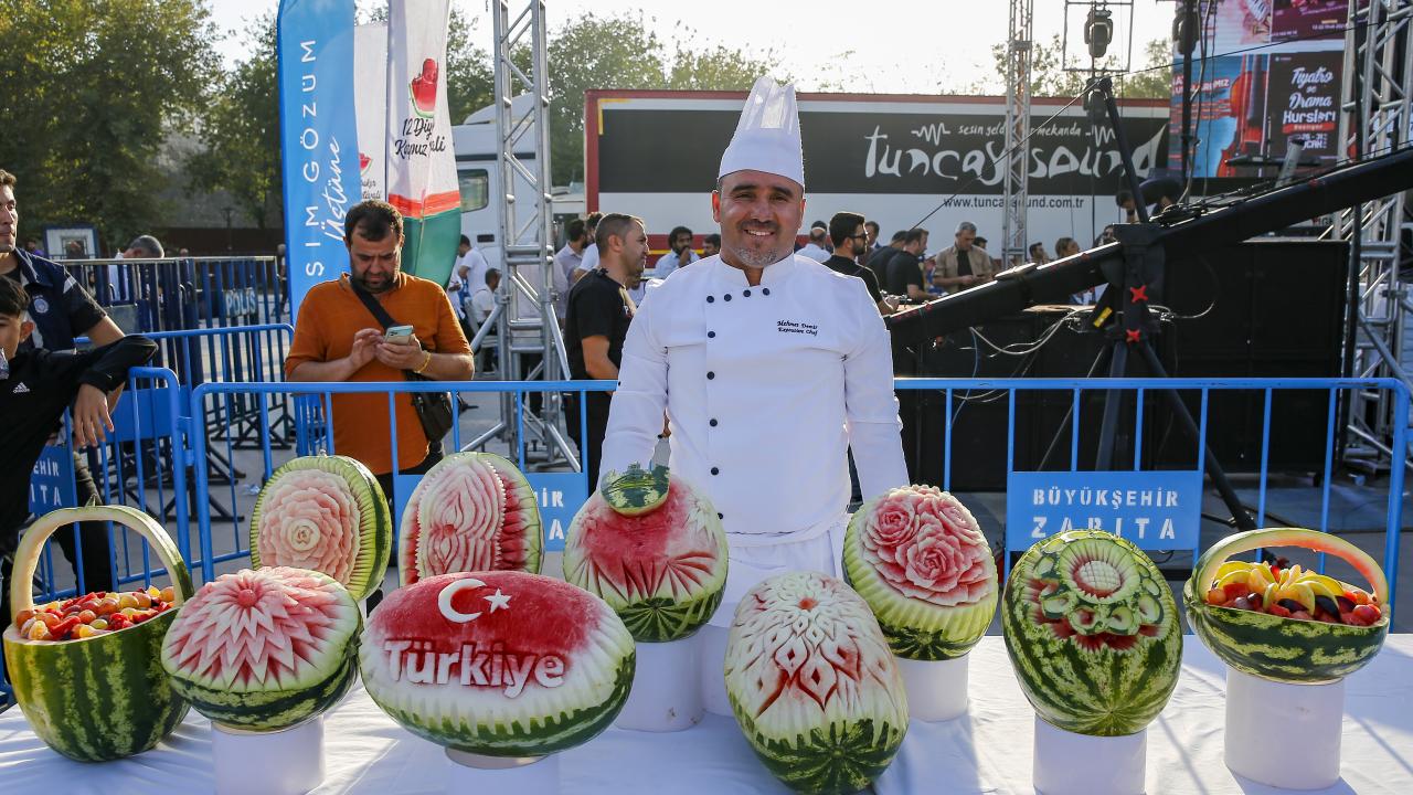 Öte yandan usta eller, sanatlarını karpuzların üzerinde konuşturdu.