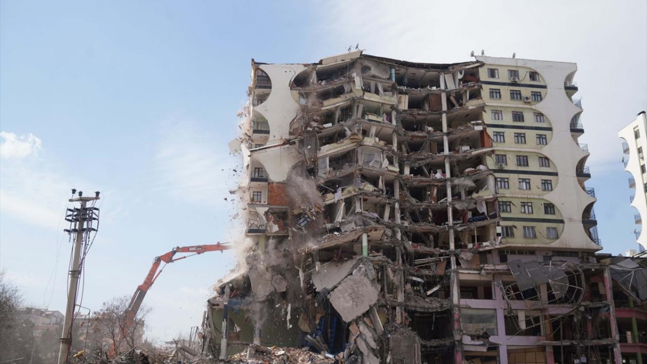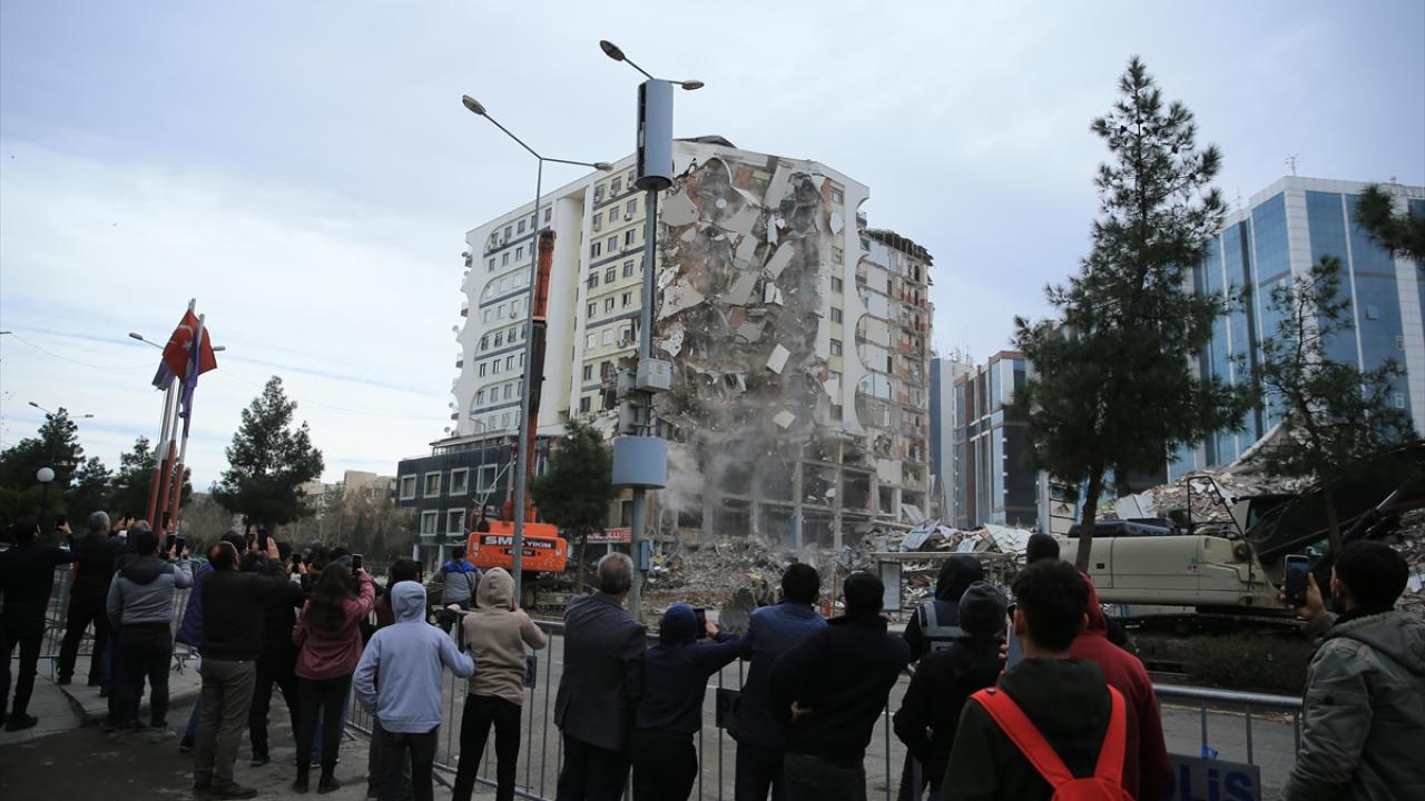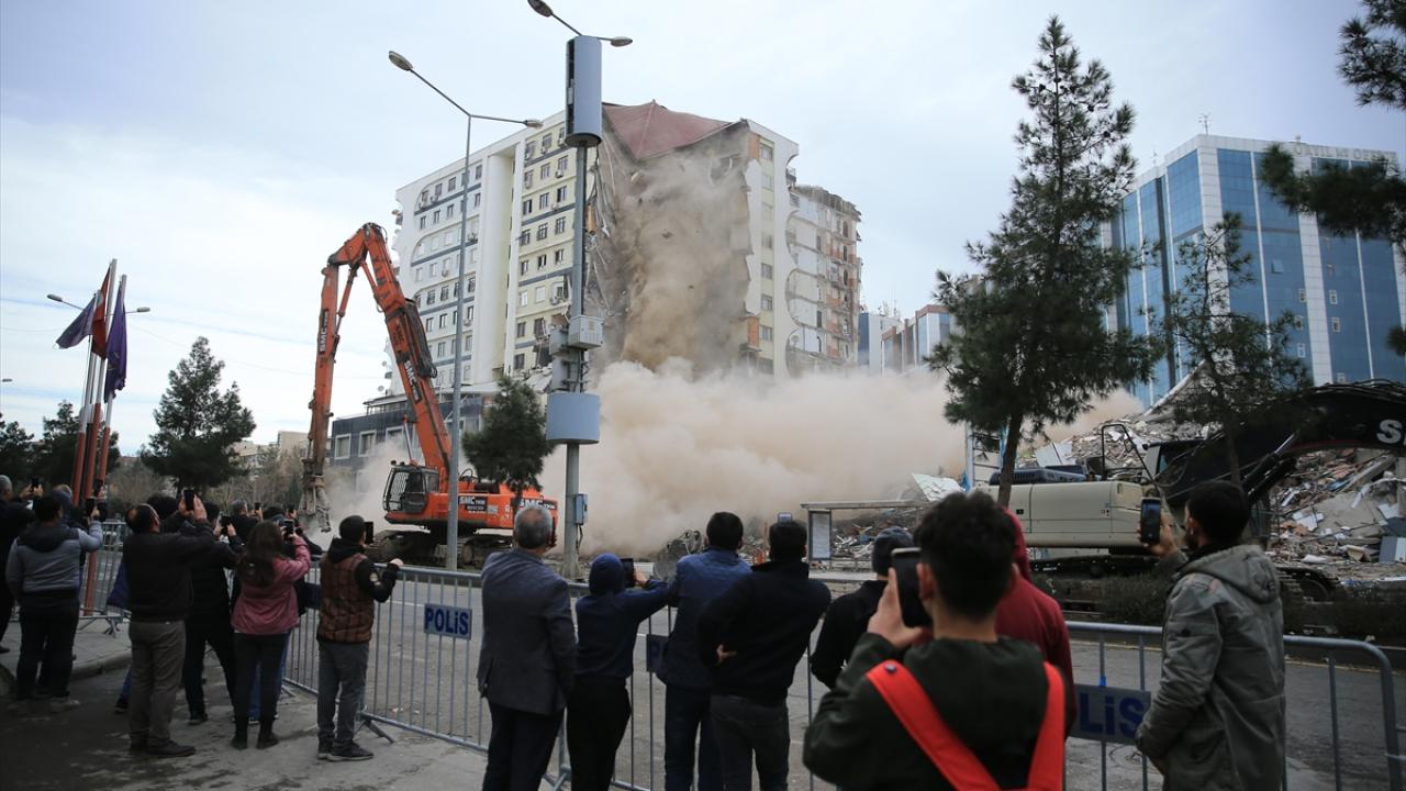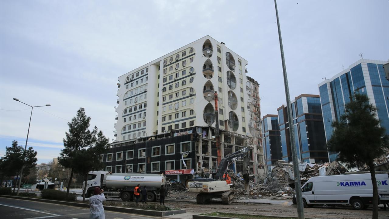 Diyarbakır'da 6 Şubat'ta meydana gelen Kahramanmaraş merkezli depremlerden dolayı ağır hasar gören Galeria İş Merkezi ve üstündeki sitenin yıkımına yeniden başlandı.