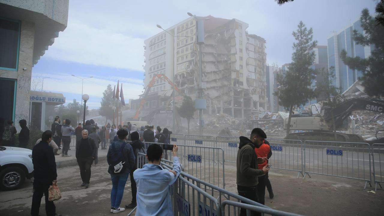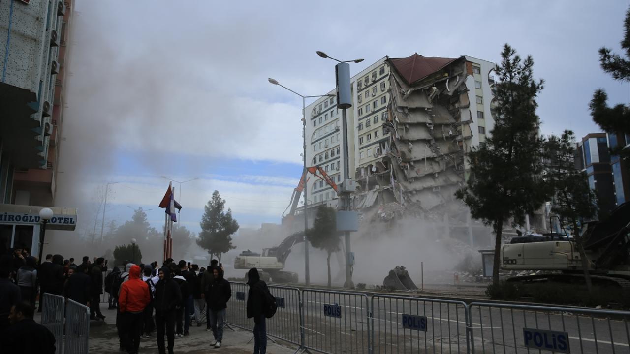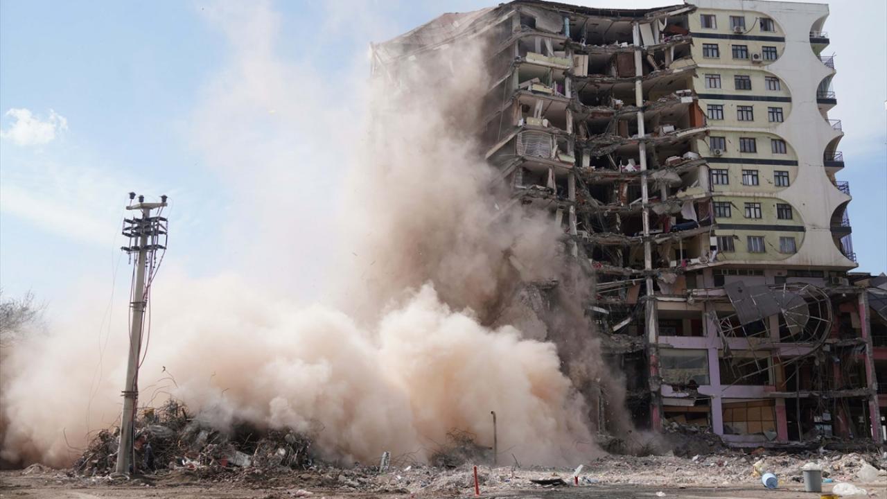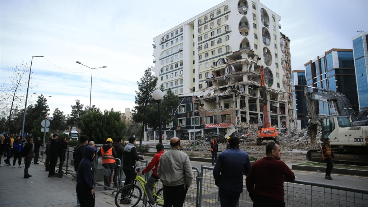 Diyarbakır'da 6 Şubat'ta meydana gelen Kahramanmaraş merkezli depremlerden dolayı ağır hasar gören Galeria İş Merkezi ve üstündeki sitenin yıkımına yeniden başlandı.