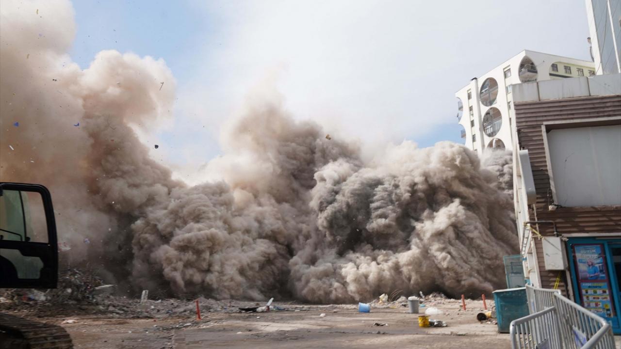 Güvenlik önlemi alınan alanda, iş makineleriyle uzman ekiplerin gözetiminde A blok kontrollü şekilde yıkıldı.