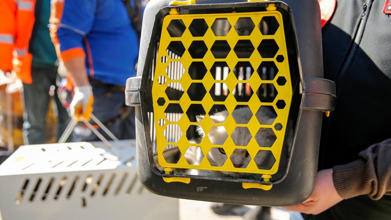 AFAD ortaklığıyla yürütülen çalışmada, depremlerde ağır hasar gören Galeria İş Merkezi ve üstündeki sitede 13 kedi kurtarıldı.