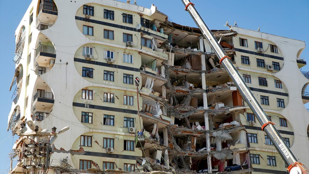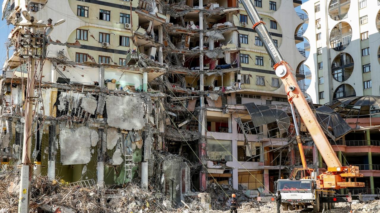Merkez Yenişehir ilçesinde Galeria İş Merkezi ve üstündeki sitede arama kurtarma çalışmalarının tamamlanmasının ardından 22 Şubat`ta kontrollü şekilde başlayan yıkım, içeride kedilerin olduğunun belirlenmesi üzerine durdurulmuştu.