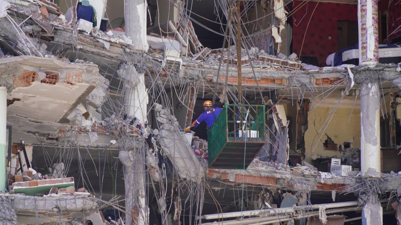 İtfaiye ve AFAD ekipleri 22 Şubat`tan bu yana vinçlerle binada belirlenen noktalara kafes koyarak hassas bir şekilde çalışma yürüttü.