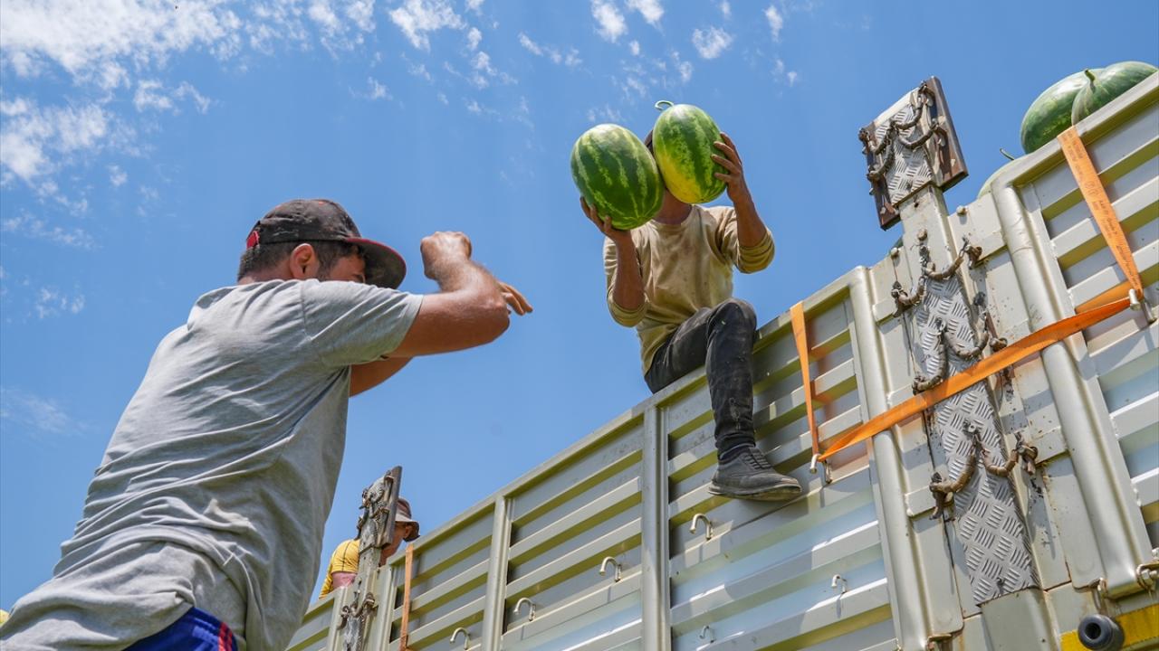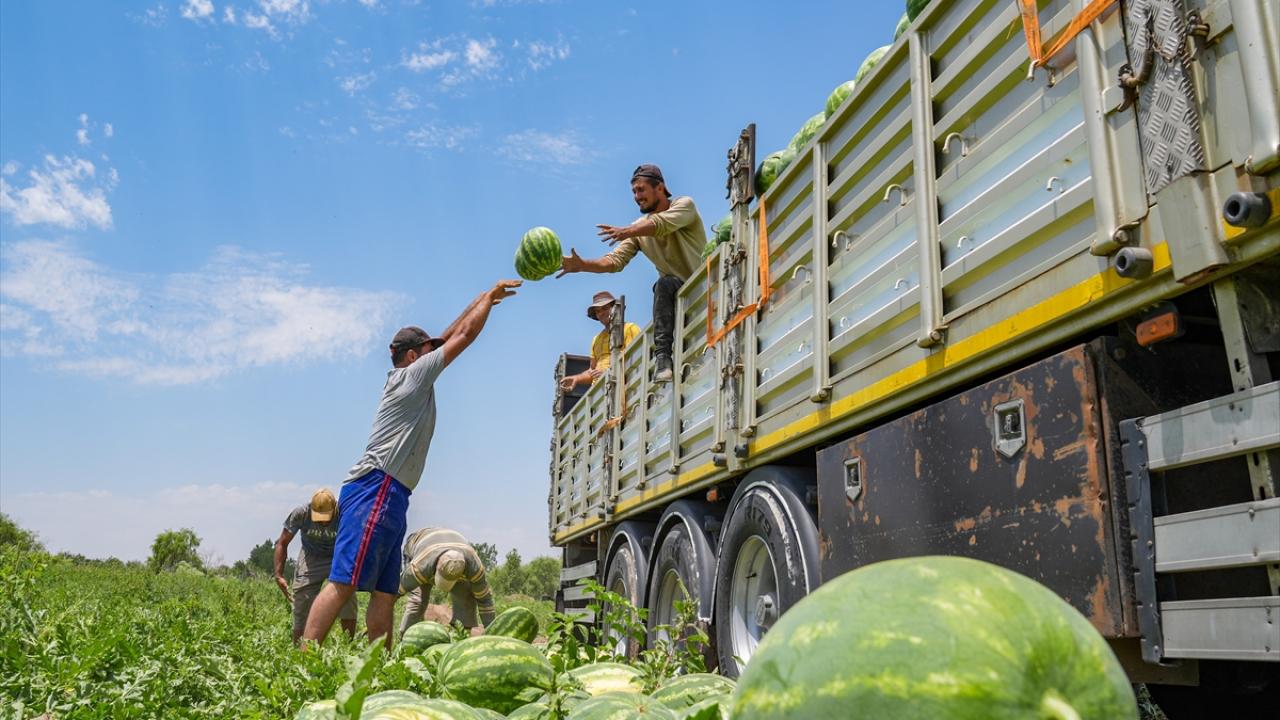 Türkiye`nin en güzel karpuzlarından birini yetiştirdiklerini ifade eden Öztek, günde 80`e yakın işçinin toplama ve yüklemede çalıştığını, sıcak havadan dolayı ilk hasadı 10 gün içerisinde bitirmek istediklerini aktar