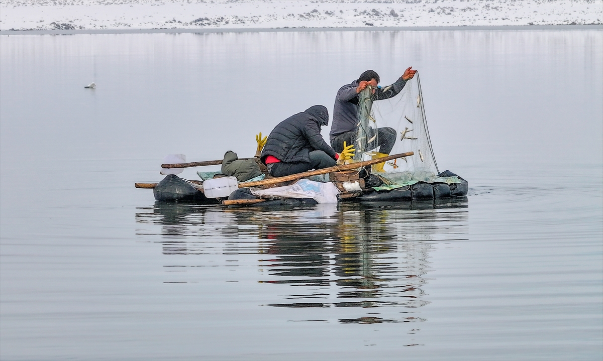 Kardan dolayı baraj gölüne traktörle geldiklerini belirten Akyüz, "Kuraklık olduğunda balık az çıkıyor ama su çok olunca balık da çok oluyor. Kar yağdığında da balık çıkıyor. Kar olmayınca işimiz zor. Bizim için kar ve yağmur yağdığında iyi oluyor. Baraj gölü eskiden daha çok buz tutuyordu fakat son yıllarda buzlanma olmuyordu. Buz olduğunda işimiz zor. Torlarımız buzun altında kalıyor ve her gün gelemiyoruz." dedi.