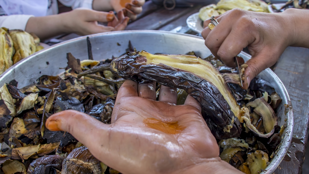 "Babaganuç hem yaz günlerinde hem de kış sofralarında olmazsa olmaz denilecek bir yemek." diyen Çetin, hemen hemen her evin en az 20 kilogram patlıcan közleyerek, kışa hazırlık yaptığını aktardı.