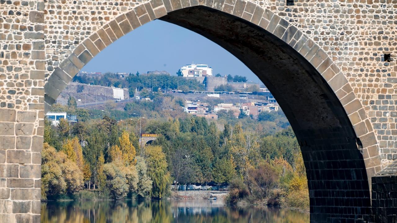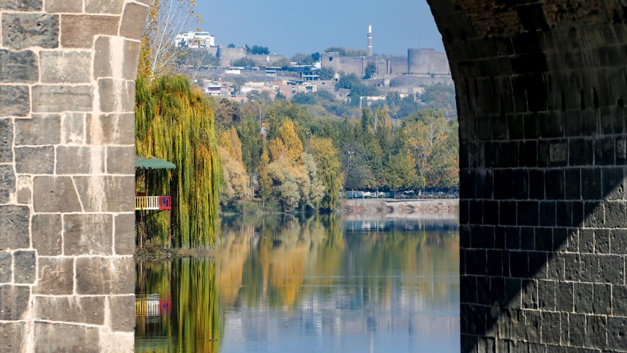 Dicle Nehri`nin iki yakasını bağlayan Ongözlü Köprü başta olmak üzere kentteki tarihi mekanlardaki eşsiz sonbahar manzaraları görenleri hayran b