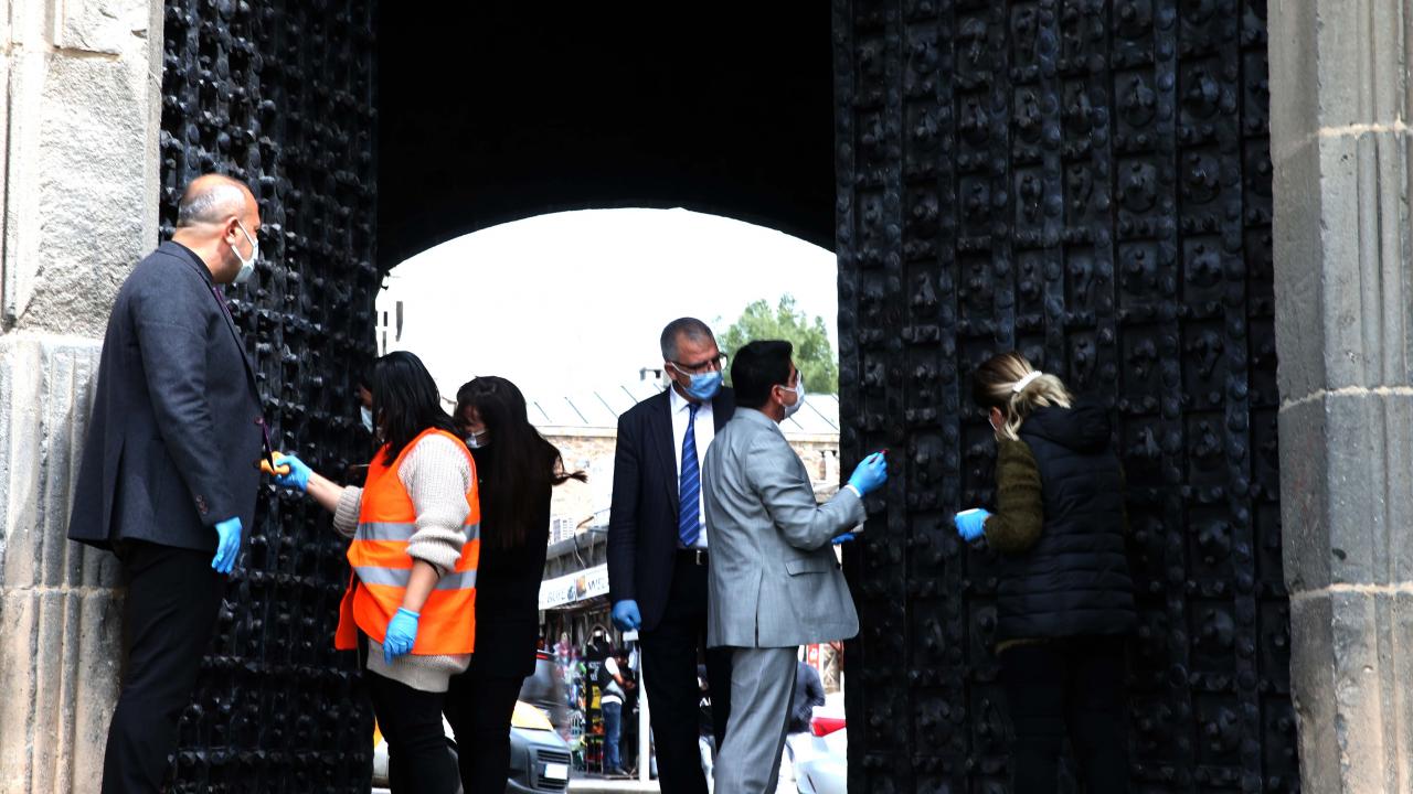 Monte işlemi tamamlanan kapıda Kültür ve Turizm İl Müdürü Cemil Alp, Diyarbakır Müze Müdürü Vehbi Yurt ve Diyarbakır Rölöve ve Anıtlar Müdürü Cemil Koç incelemede bulundu.