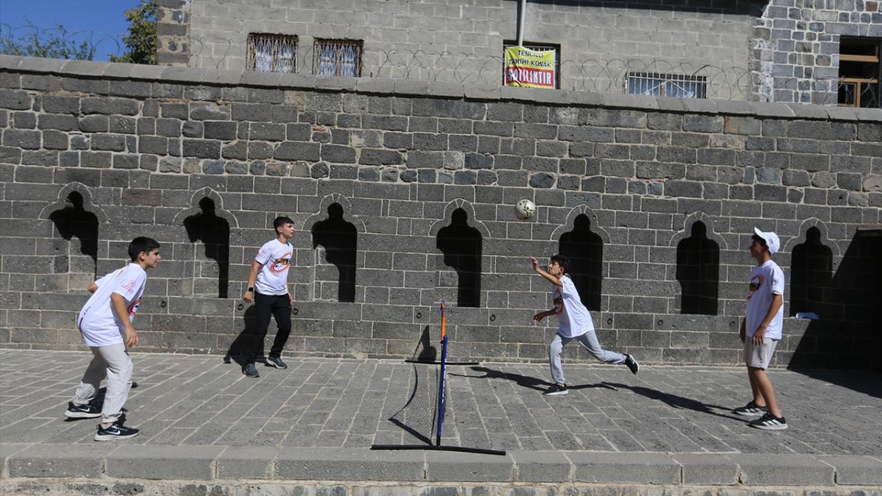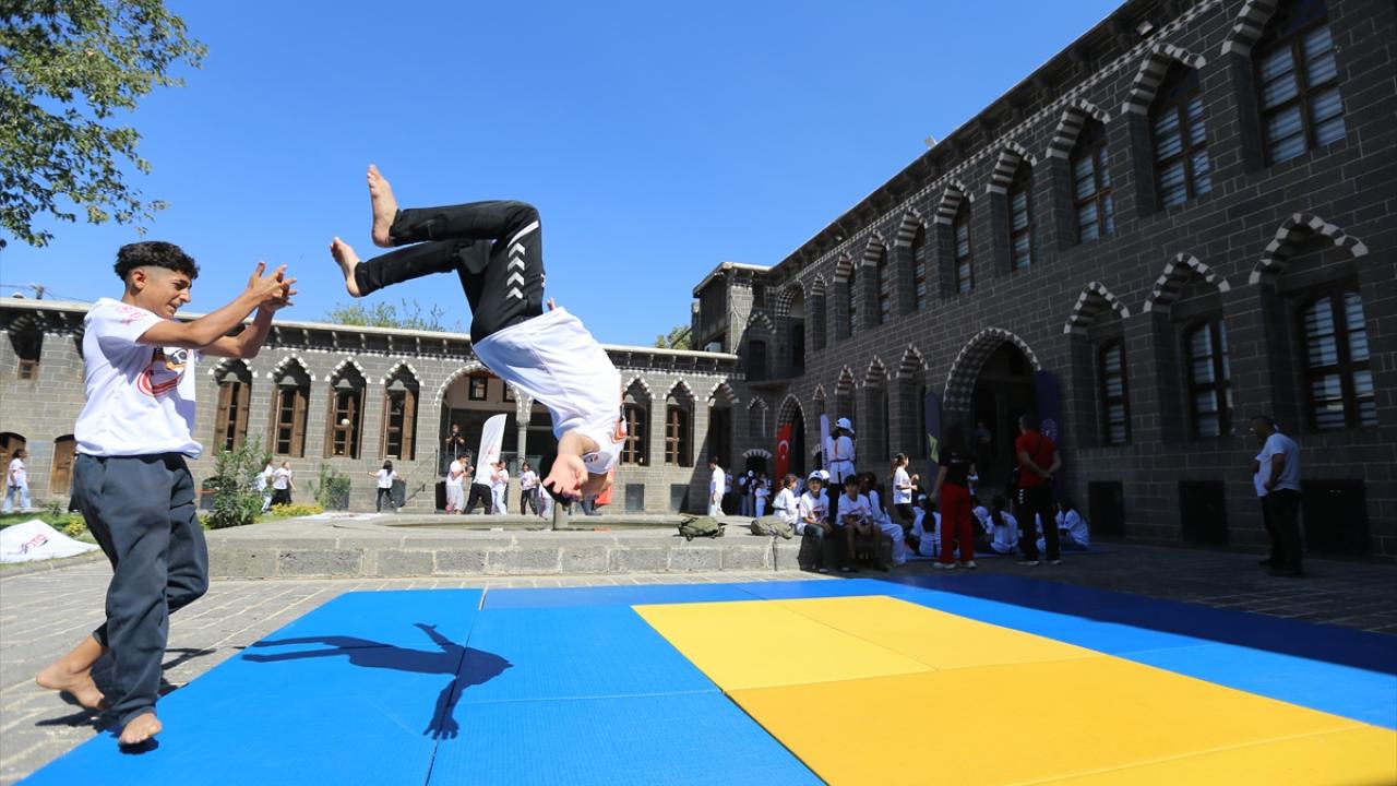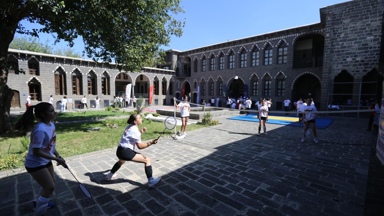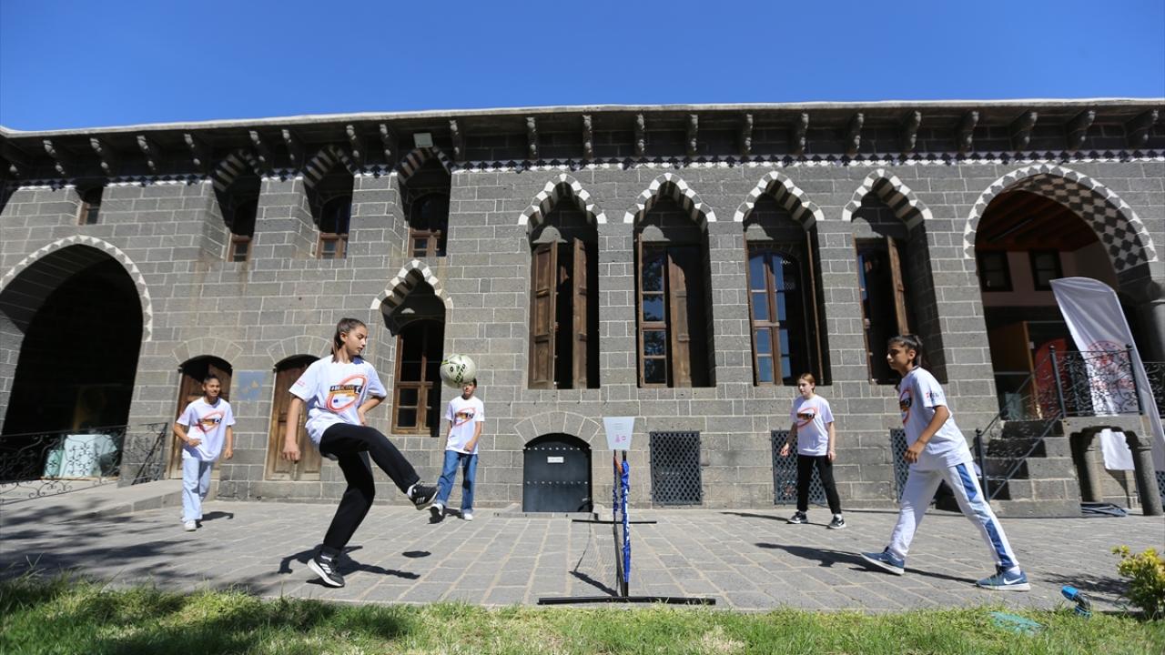 Çocukların ve gençlerin spora yönlendirilmesi, tarihi mekanların tanıtımına katkı sunulması hedeflenen organizasyonda, merkez Sur ilçesindeki İçkale Müze Kompleksi ve Cemil Paşa Konağı`nda kurulan alanlarda onlarca çocuk ve genç farklı branşlarda spor yapıyor.