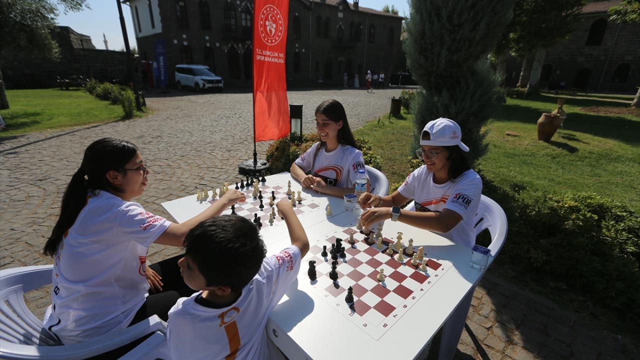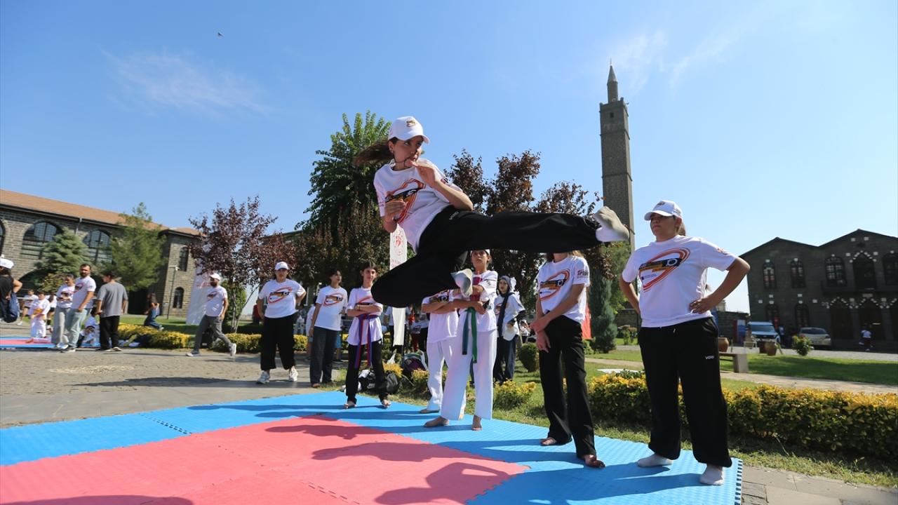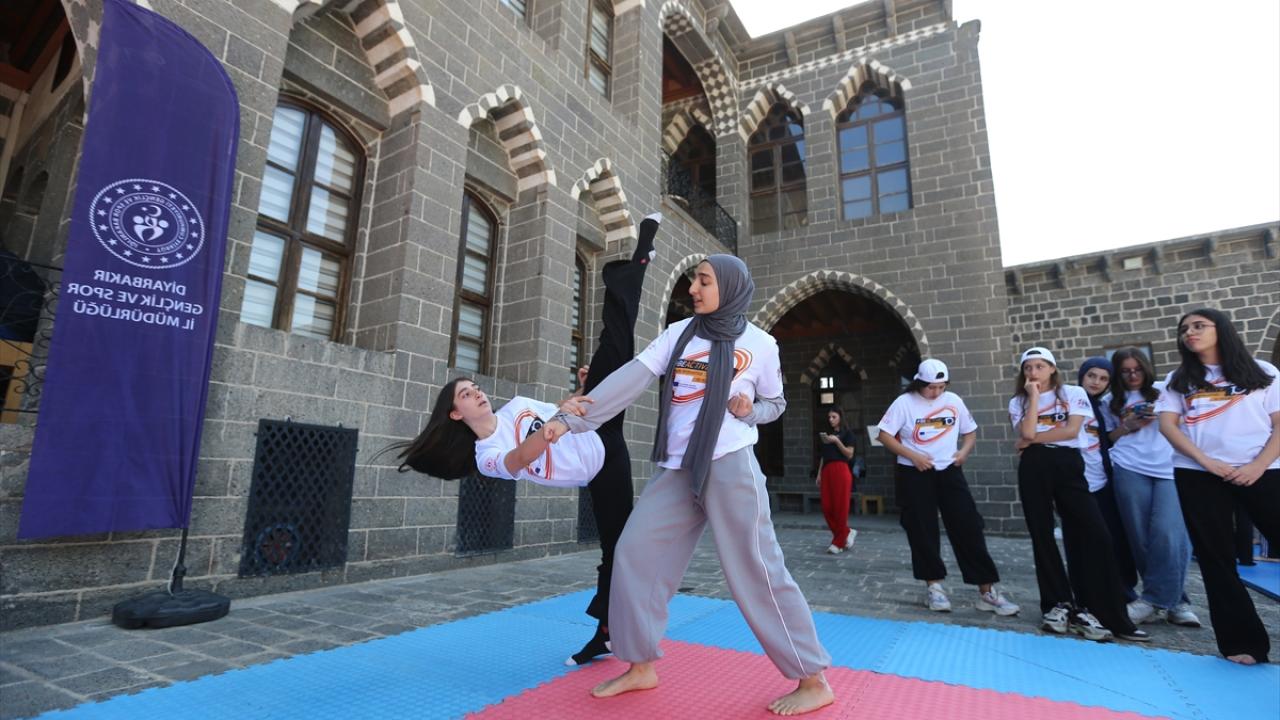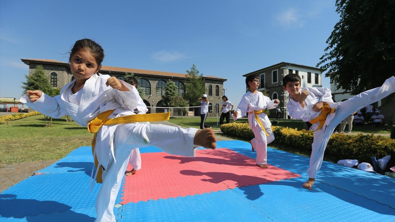 Çocukların ve gençlerin spora yönlendirilmesi, tarihi mekanların tanıtımına katkı sunulması hedeflenen organizasyonda, merkez Sur ilçesindeki İçkale Müze Kompleksi ve Cemil Paşa Konağı`nda kurulan alanlarda onlarca çocuk ve genç farklı branşlarda spor yapıyor.