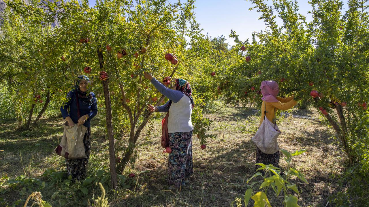 Diyarbakır'ın Akdeniz iklimine sahip Geçit köyünde nar hasadı telaşı