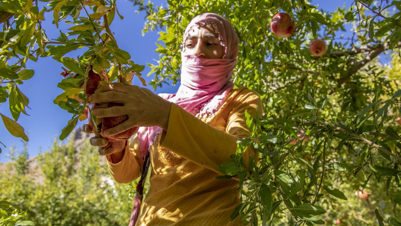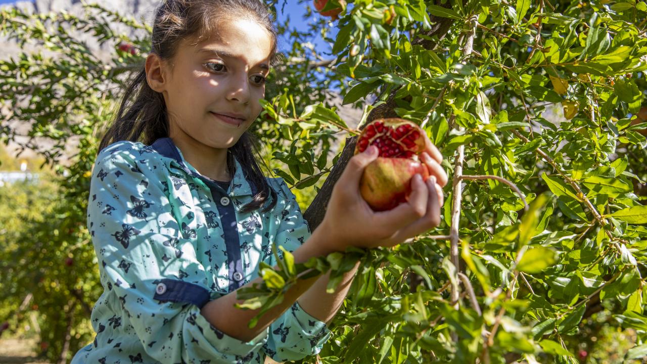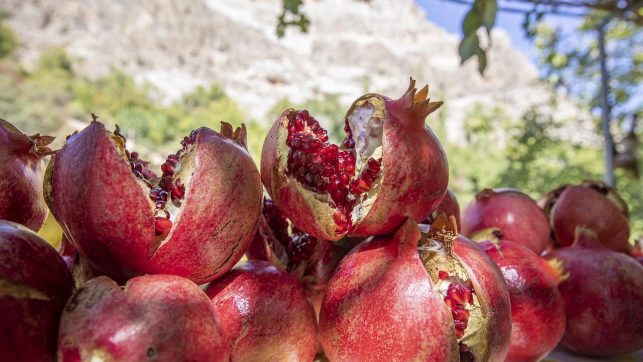 Diyarbakır'ın Çüngüş ilçesinde coğrafi konumu ve yeşil vadiyi andıran görüntüsüyle dikkati çeken Geçit köyünde doğal yöntemlerle yetiştirilen nar hasadı devam ediyor.