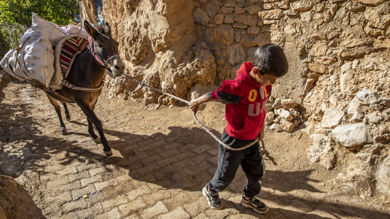 Köyün en büyük geçim kaynağı olan narın hasadı sürüyor.