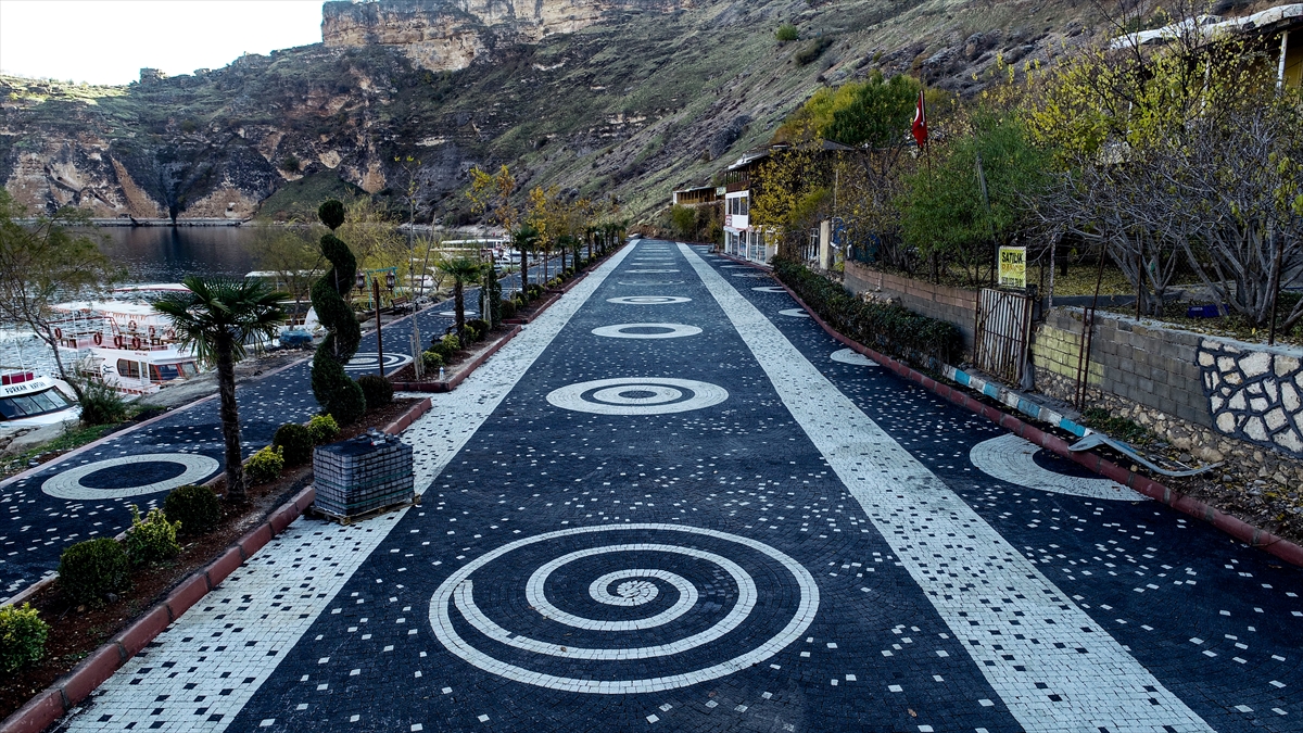 Dekoratif desenli yol döşemesi ve ağaçlandırma sayesinde baraj kıyısı güzel görünüme kavuştu.