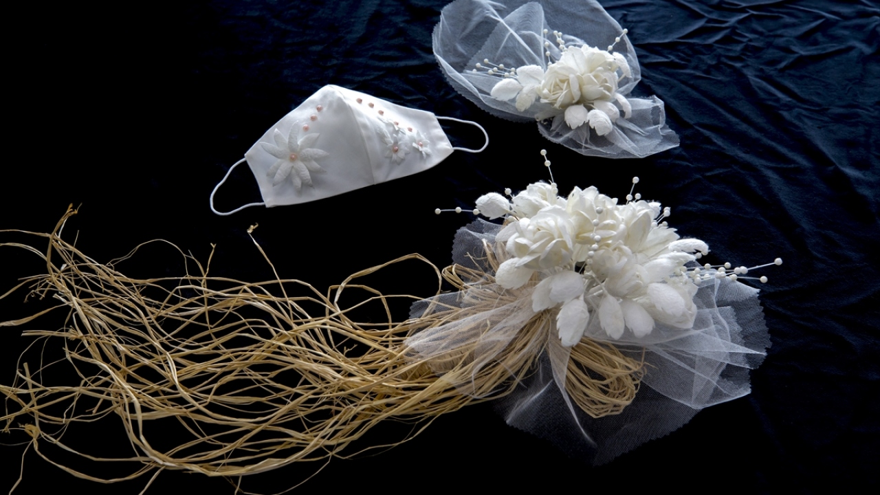 "Gelinlerimizi düşündük fakat düğüne giden sadece gelinlerimiz değil. Aynı zamanda konuklarımızı, çocuk ve erkekleri de düşündük. Gelin ve damat kadar şık olup eğlenmelerini istedik. Yani kişinin kendi istediği tasarım varsa arkadaşlarımız kişiye özel çalışarak yapabiliyor. Yani maskeye nakış, tel kırma, Maraş işi, hesap işi yaptık. El sanatları atölyemiz koza çalışmasıyla, boncuk işlemesiyle maskeler üretti. Sadece maskeyle sınırlı kalmadık. Kadınların aksesuarı sadece maskeden ibaret olmasın dedik. Çantasını, yelpazesini, fularını da düşünerek tasarımlar yaptık."